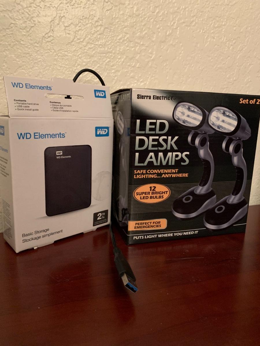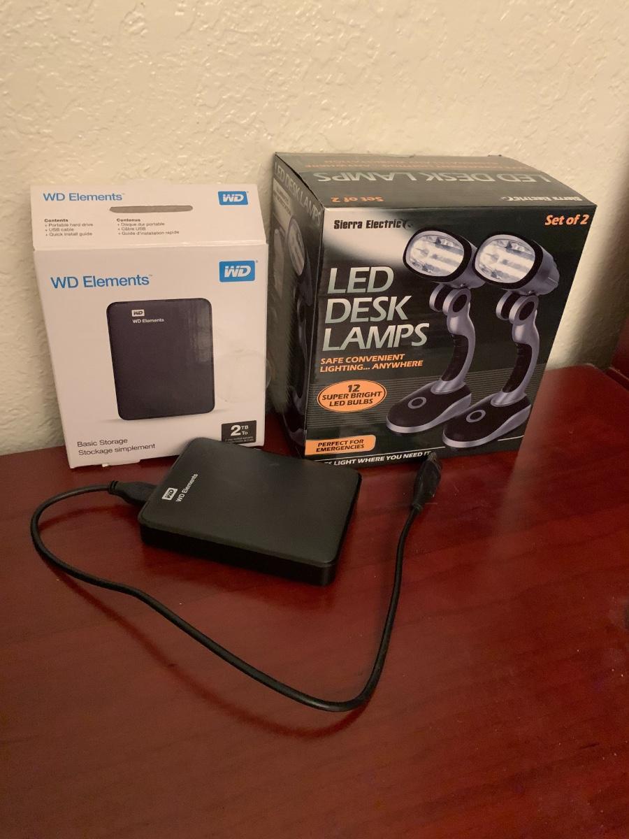 WD Elements 2TB Drive + Sierra Electric LED Desk Lamps