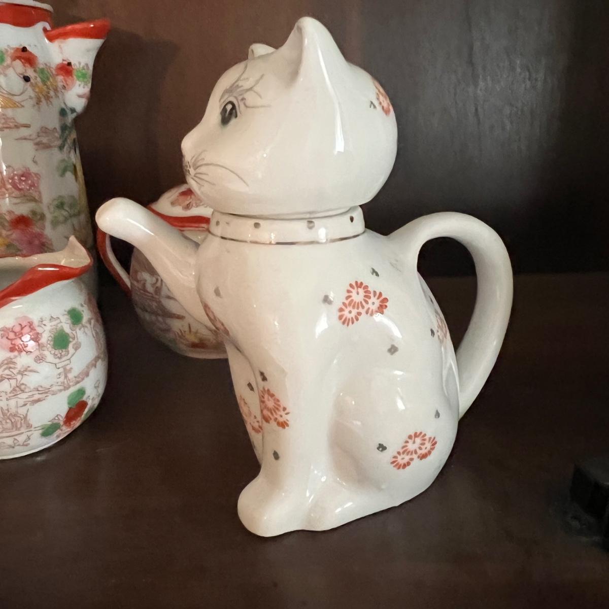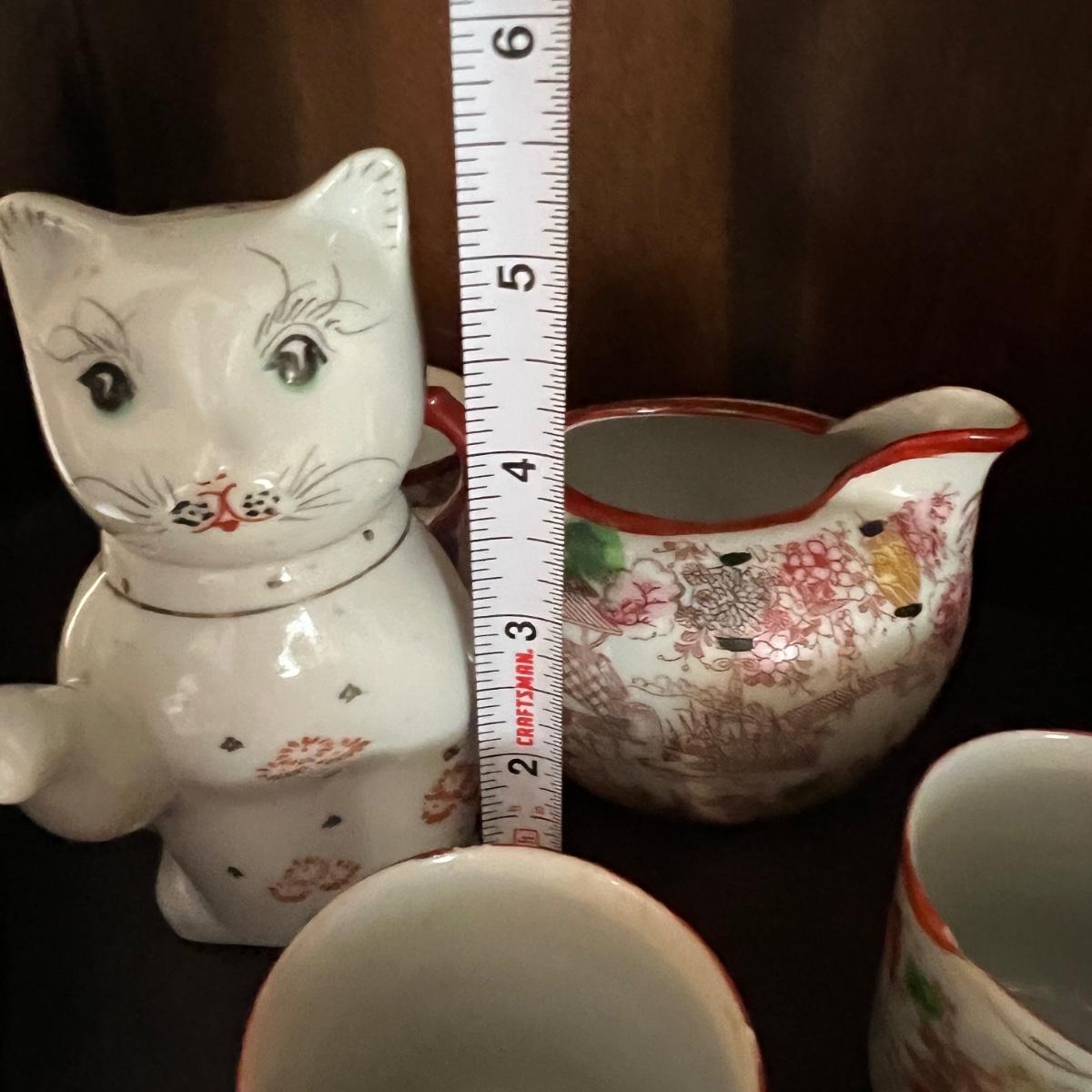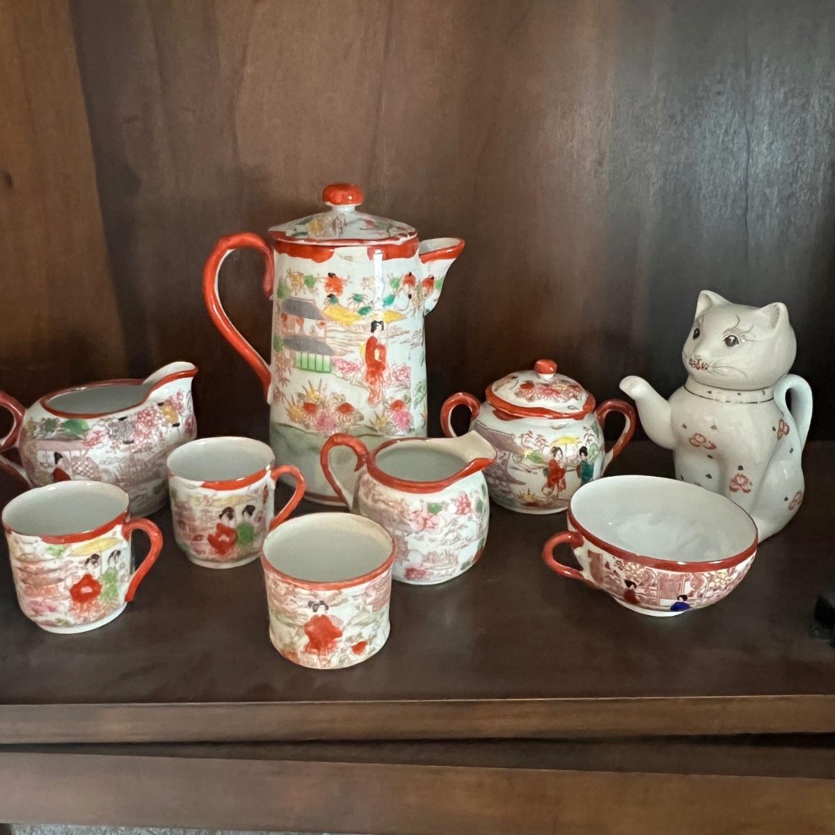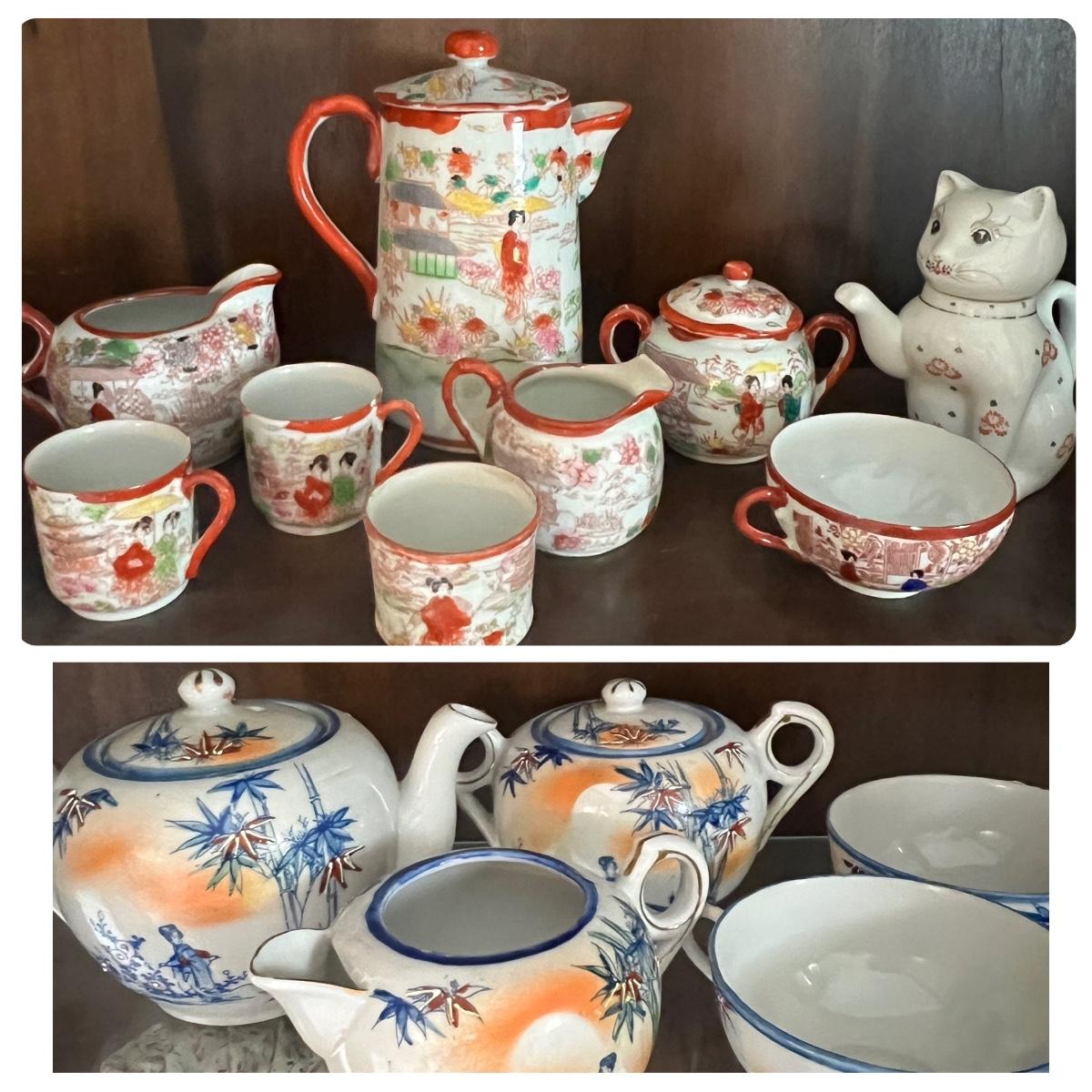 Lot of 2 Japanese Porcelain Tea Sets + Cat Ceramic Tea Pot