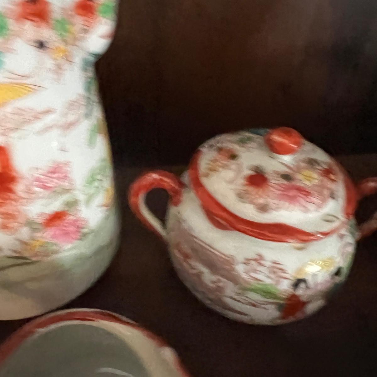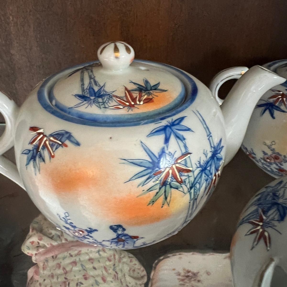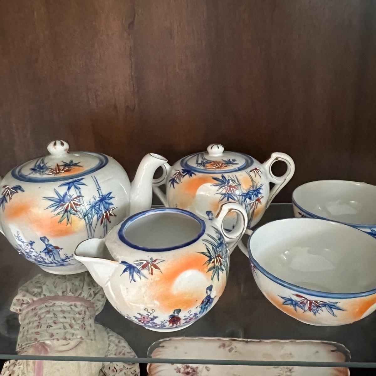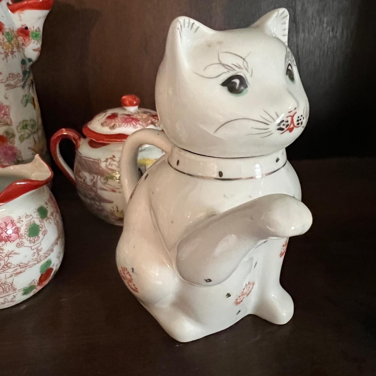 Lot of 2 Japanese Porcelain Tea Sets + Cat Ceramic Tea Pot