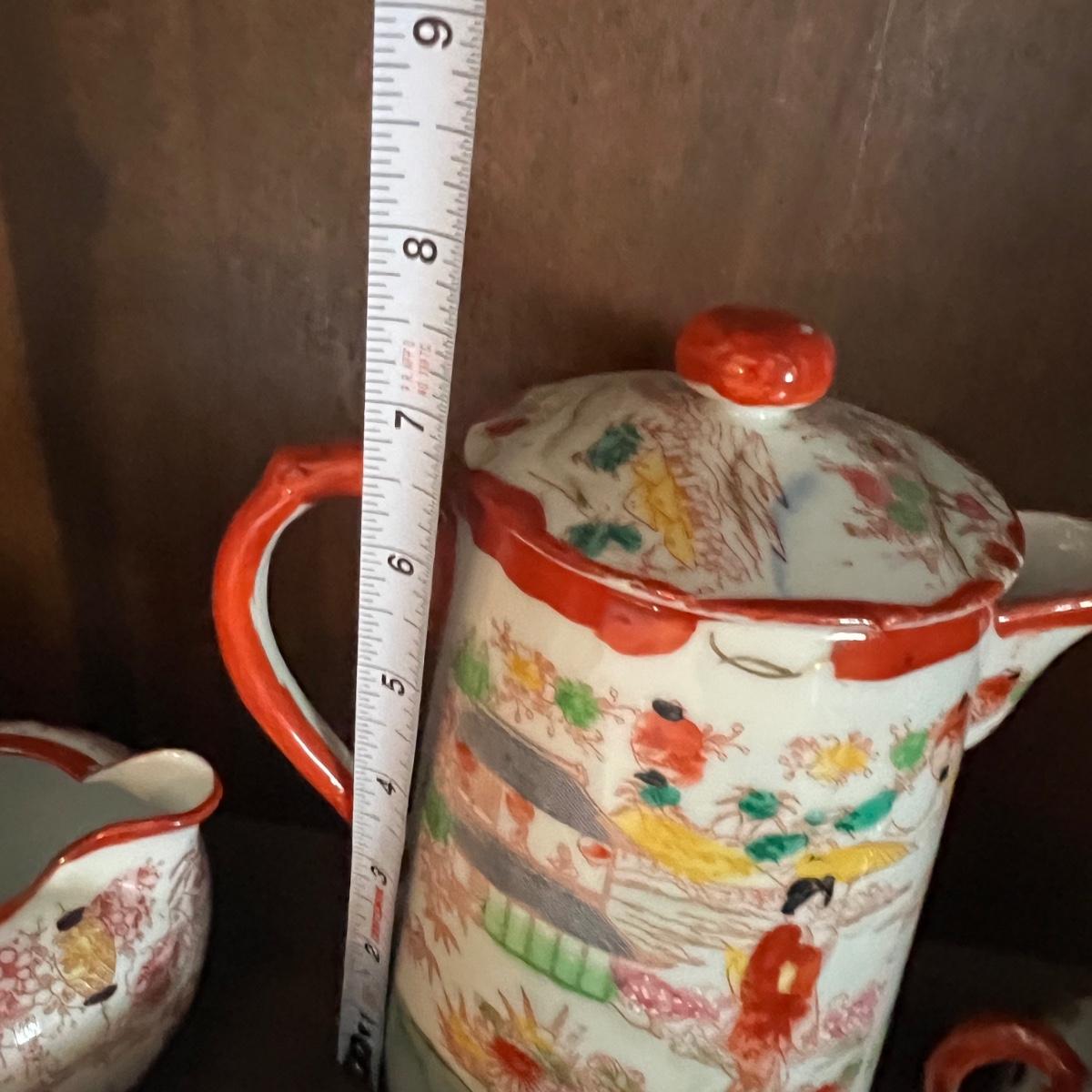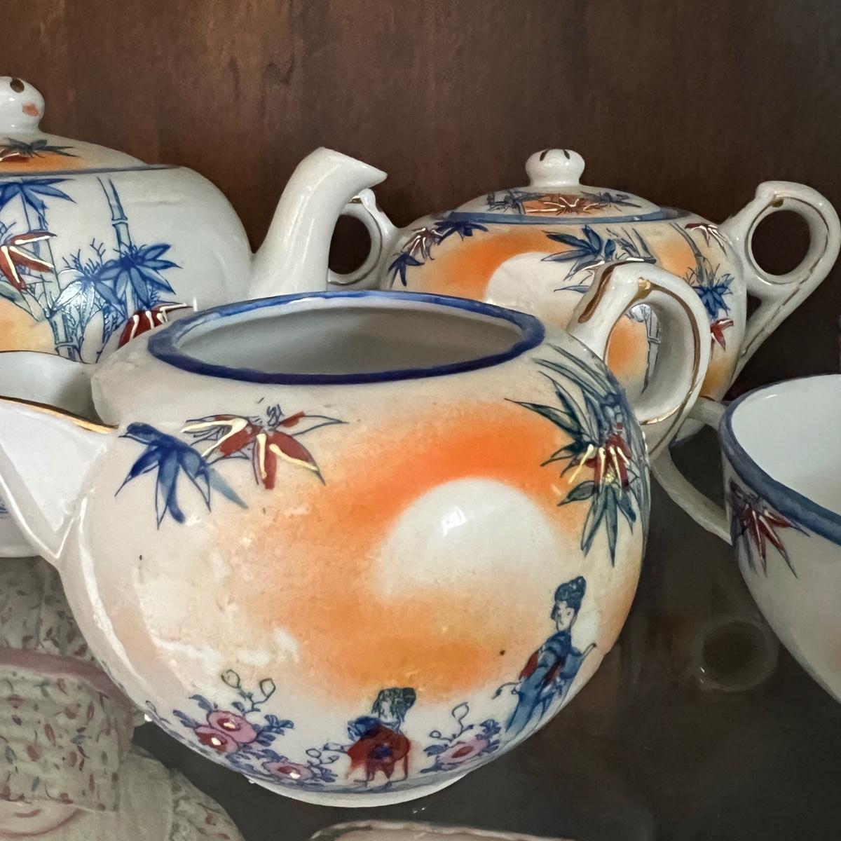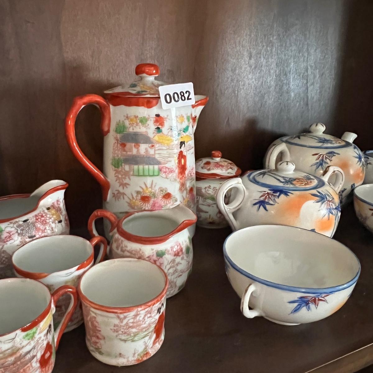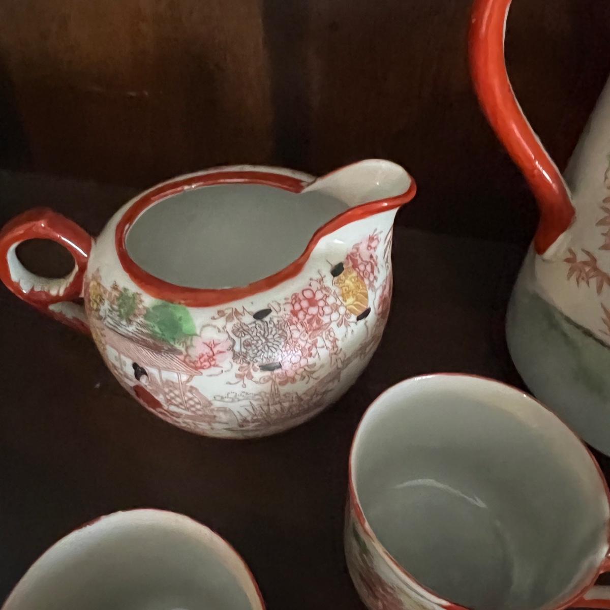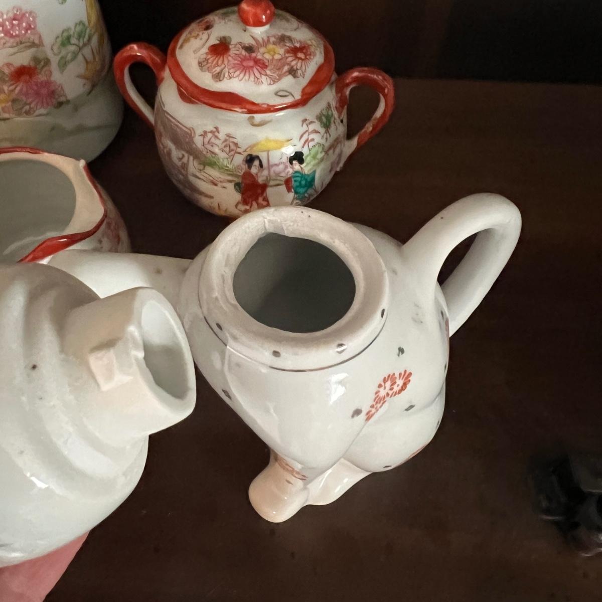 Lot of 2 Japanese Porcelain Tea Sets + Cat Ceramic Tea Pot