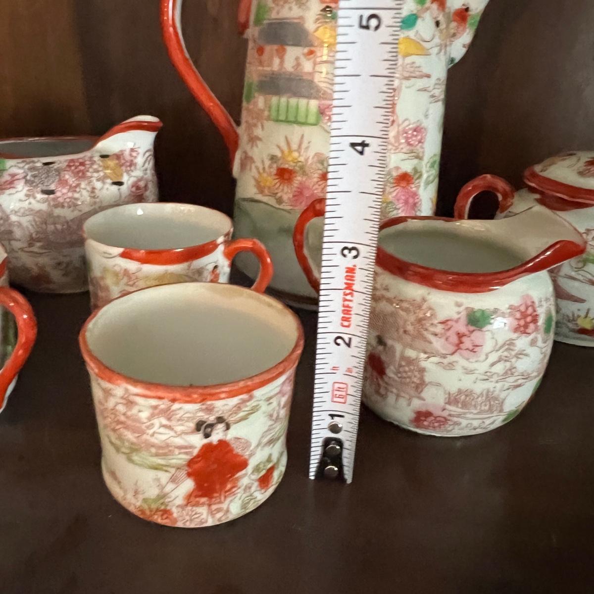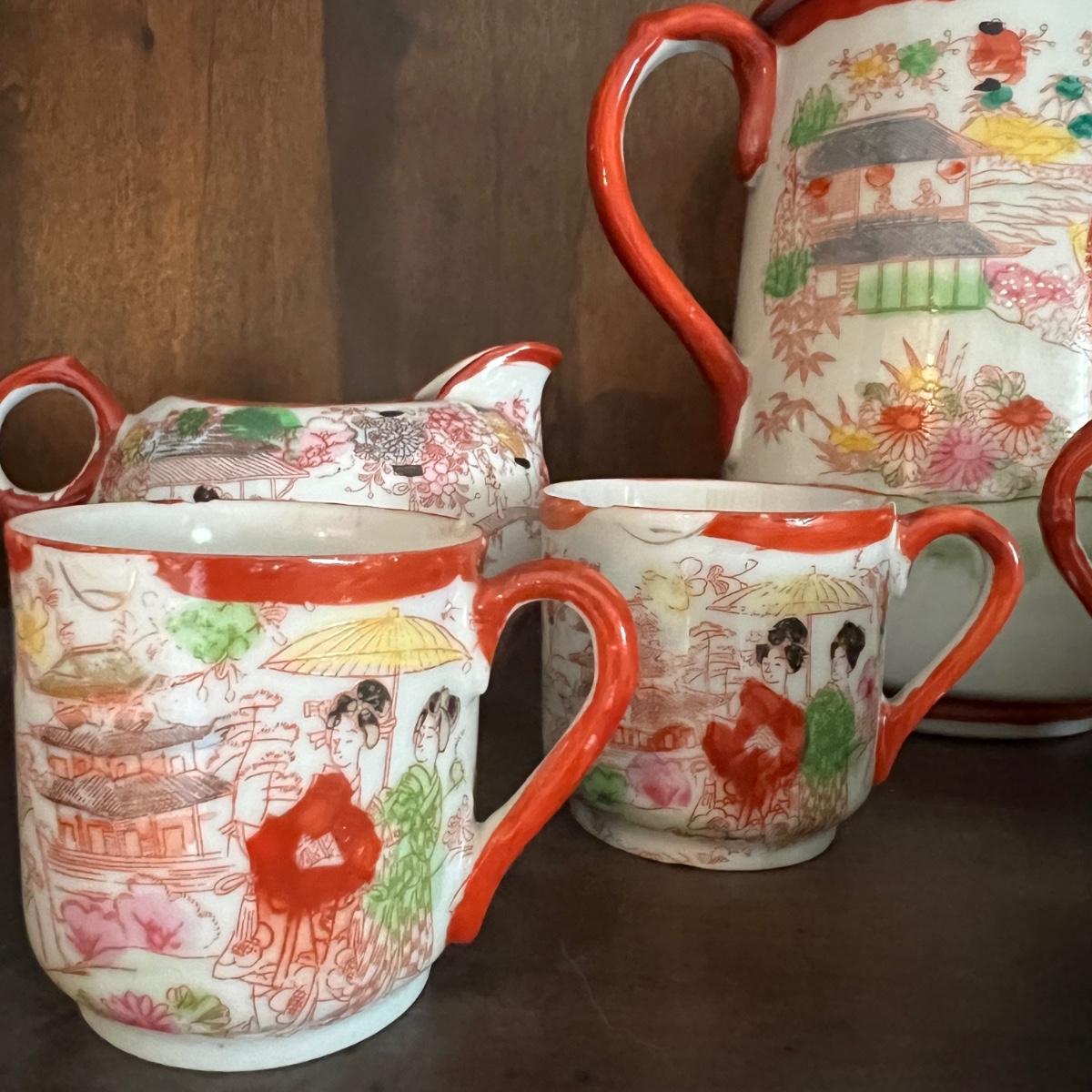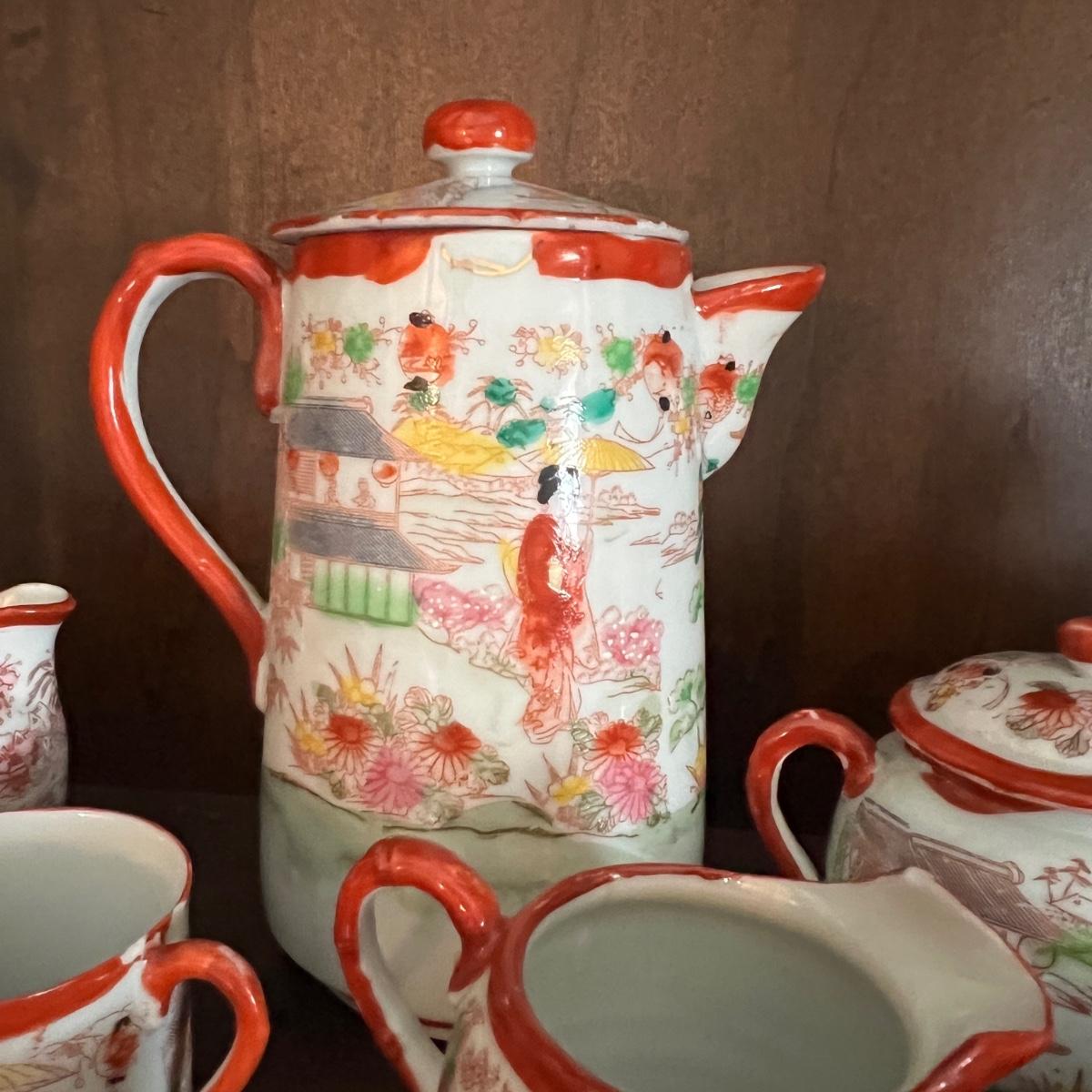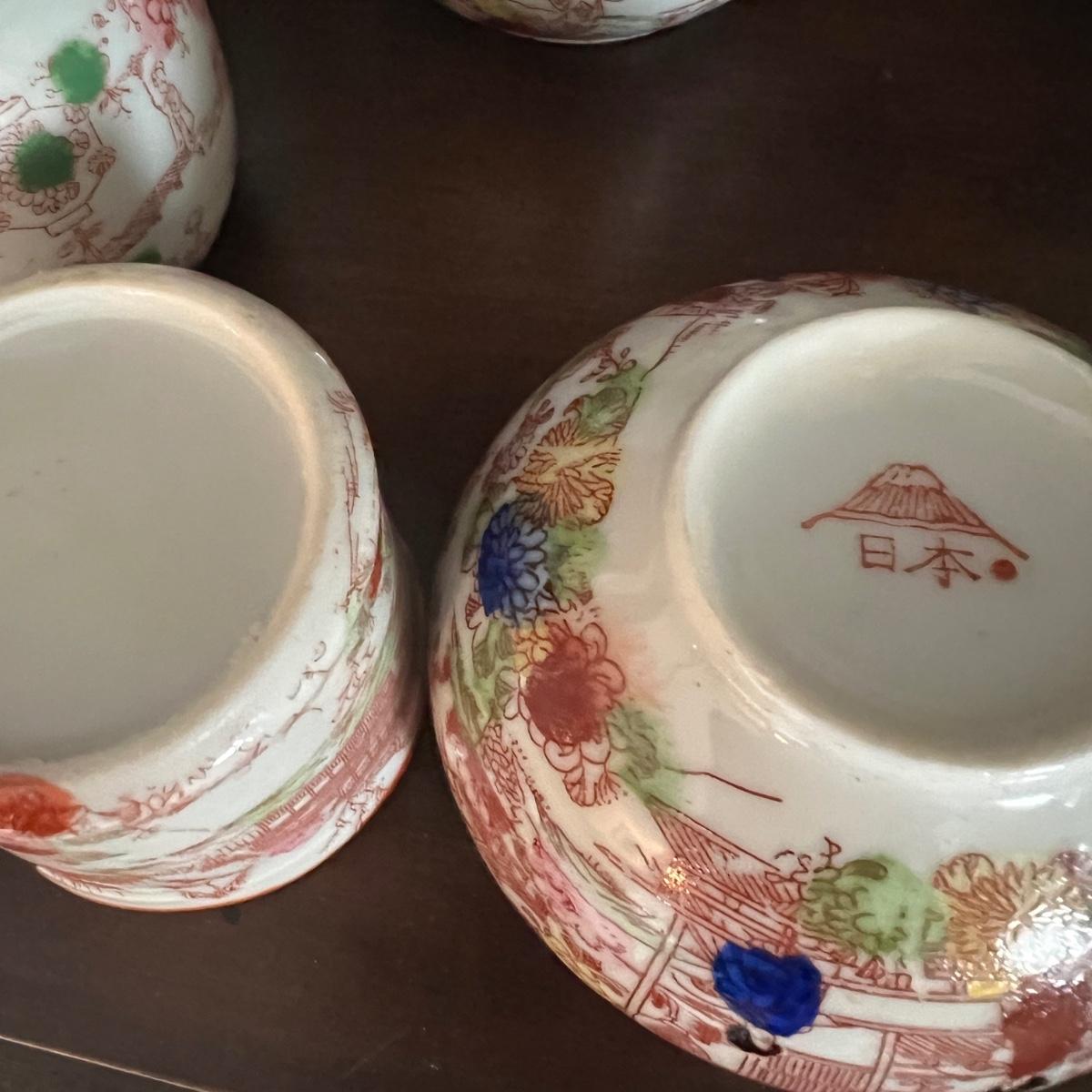 Lot of 2 Japanese Porcelain Tea Sets + Cat Ceramic Tea Pot