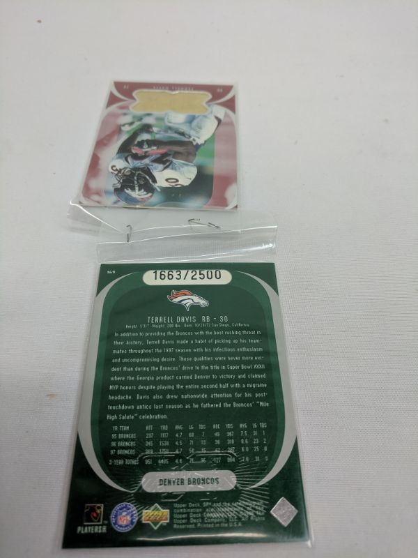 2 Terrell Davis Football Cards, Denver Broncos, Upper Deck