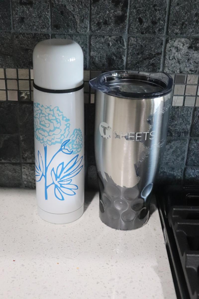 This lot includes two thermal cups, designed to keep your beverages hot or cold for extended periods. Ideal for coffee, tea, or iced drinks, these durable cups are perfect for on-the-go use, whether you're commuting, traveling, or enjoying the outdoors. Their sleek design and insulating properties make them a practical addition to your drinkware collection. Great for both personal use and as gifts!