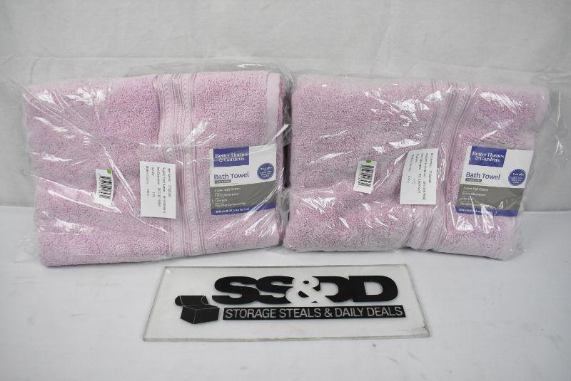 2 Thick and Plush Bath Towels, Mauve Splash by BH&G - New