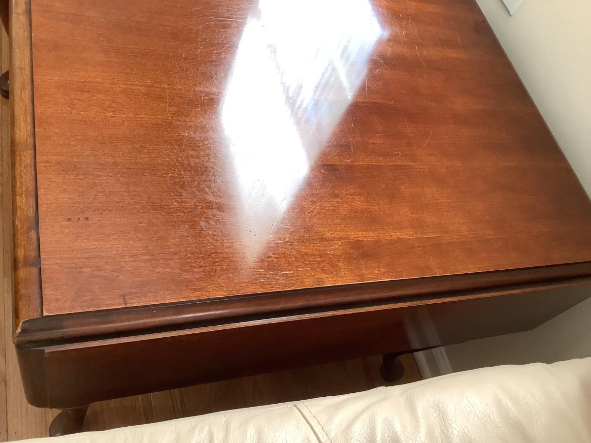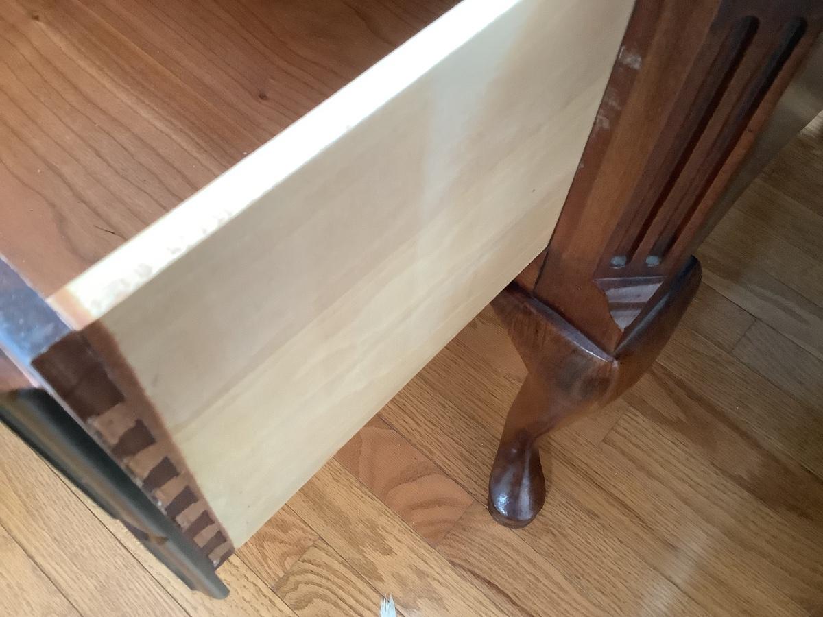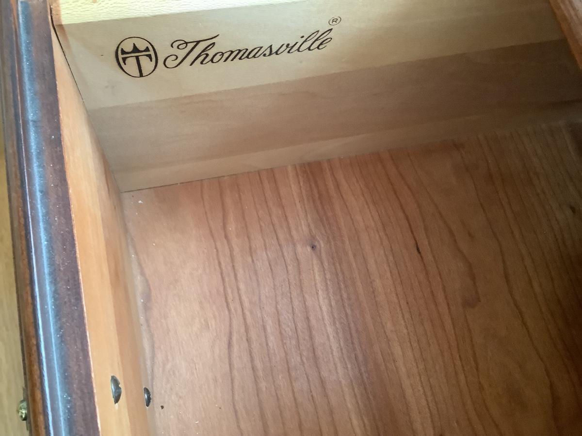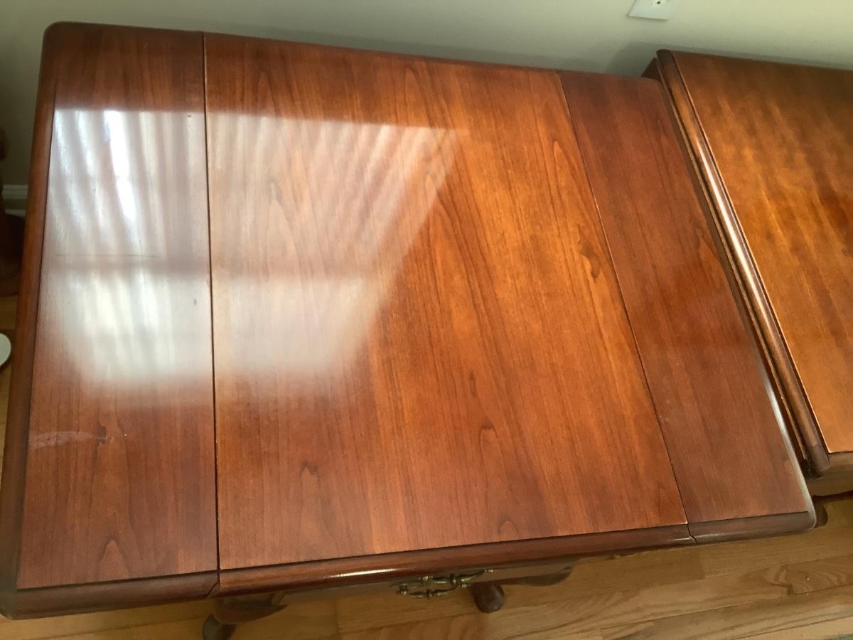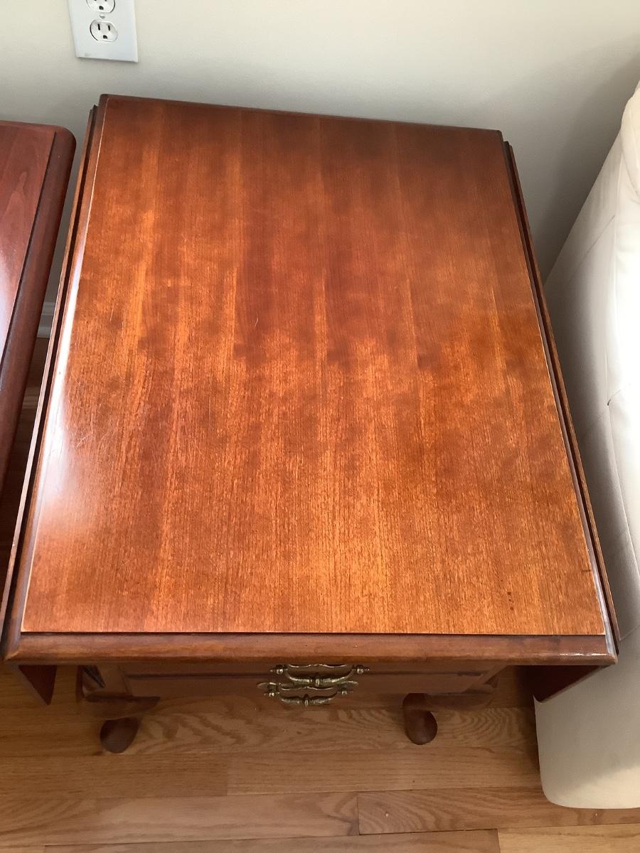 2- Thomasville drop leaf end/side tables, 1 drawer each, 24”H 21” x 28”- 35” with leaves up