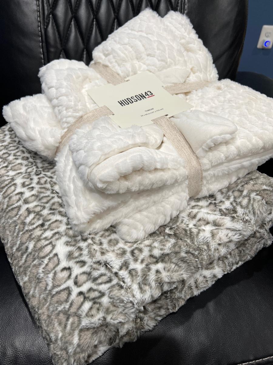The white on is brand new by Hudson 43. The other has barely been used. Super soft! 50" x60"