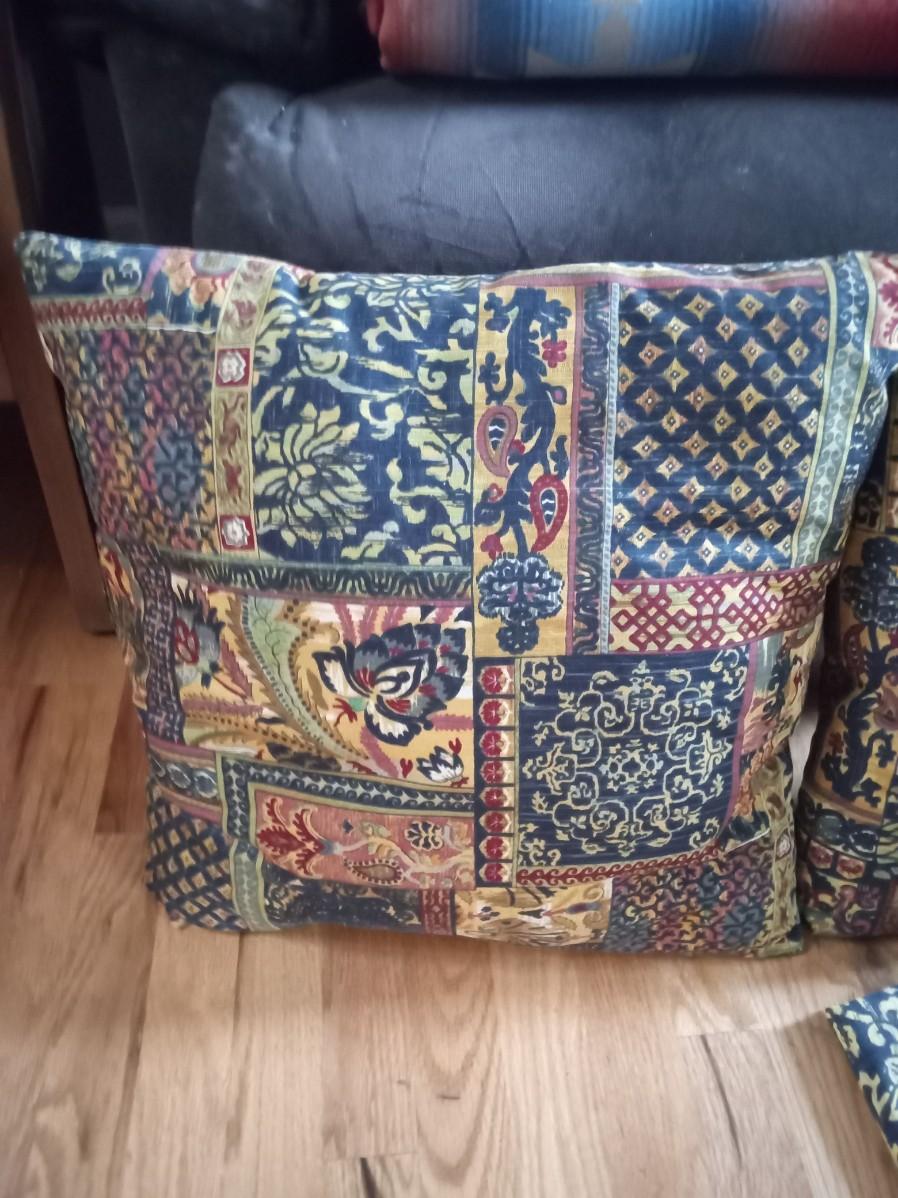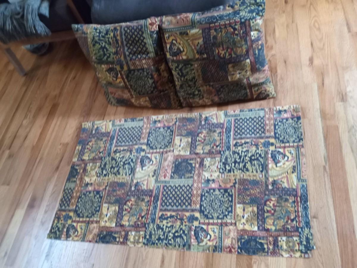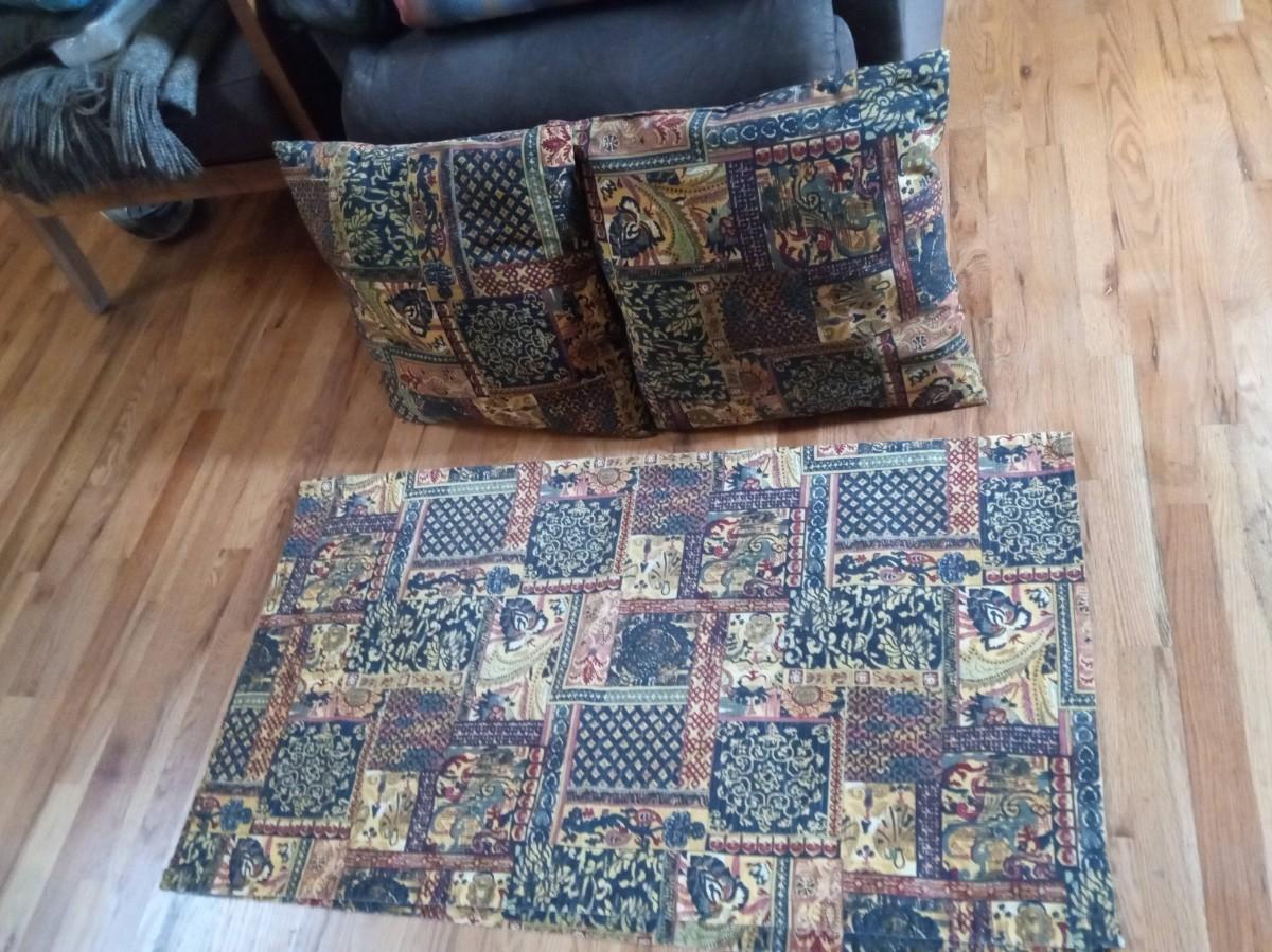 2 THROW PILLOWS AND MATCHING CARD TABLE SIZE CLOTH