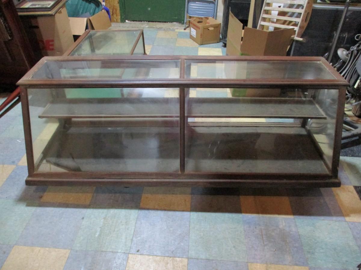 Antique Tiger Oak Frame 2 Tier Display Cabinet