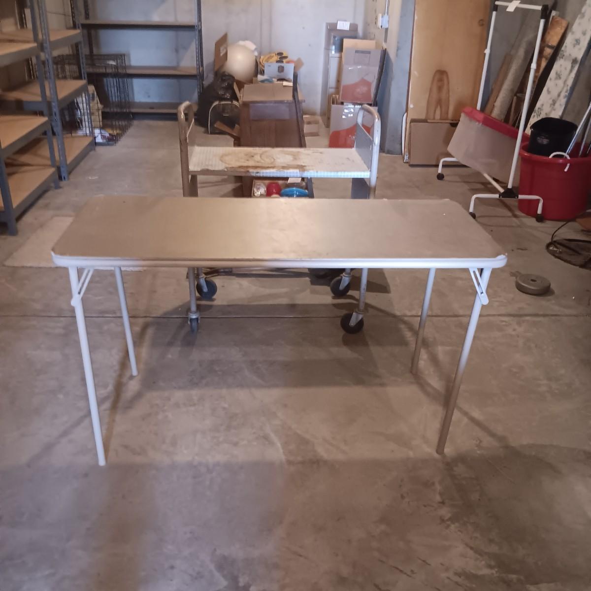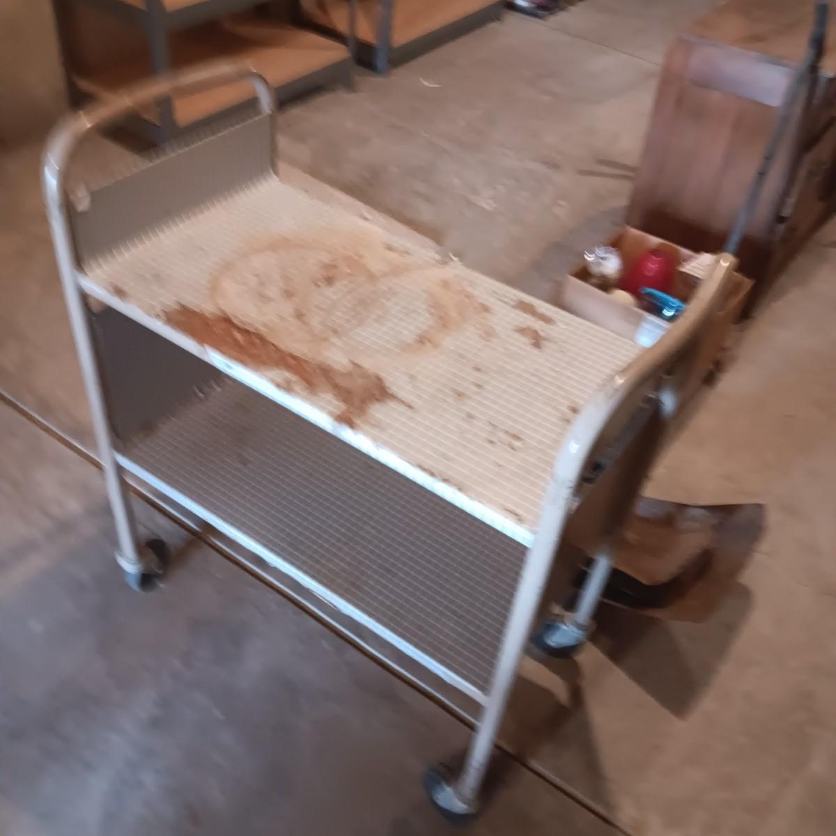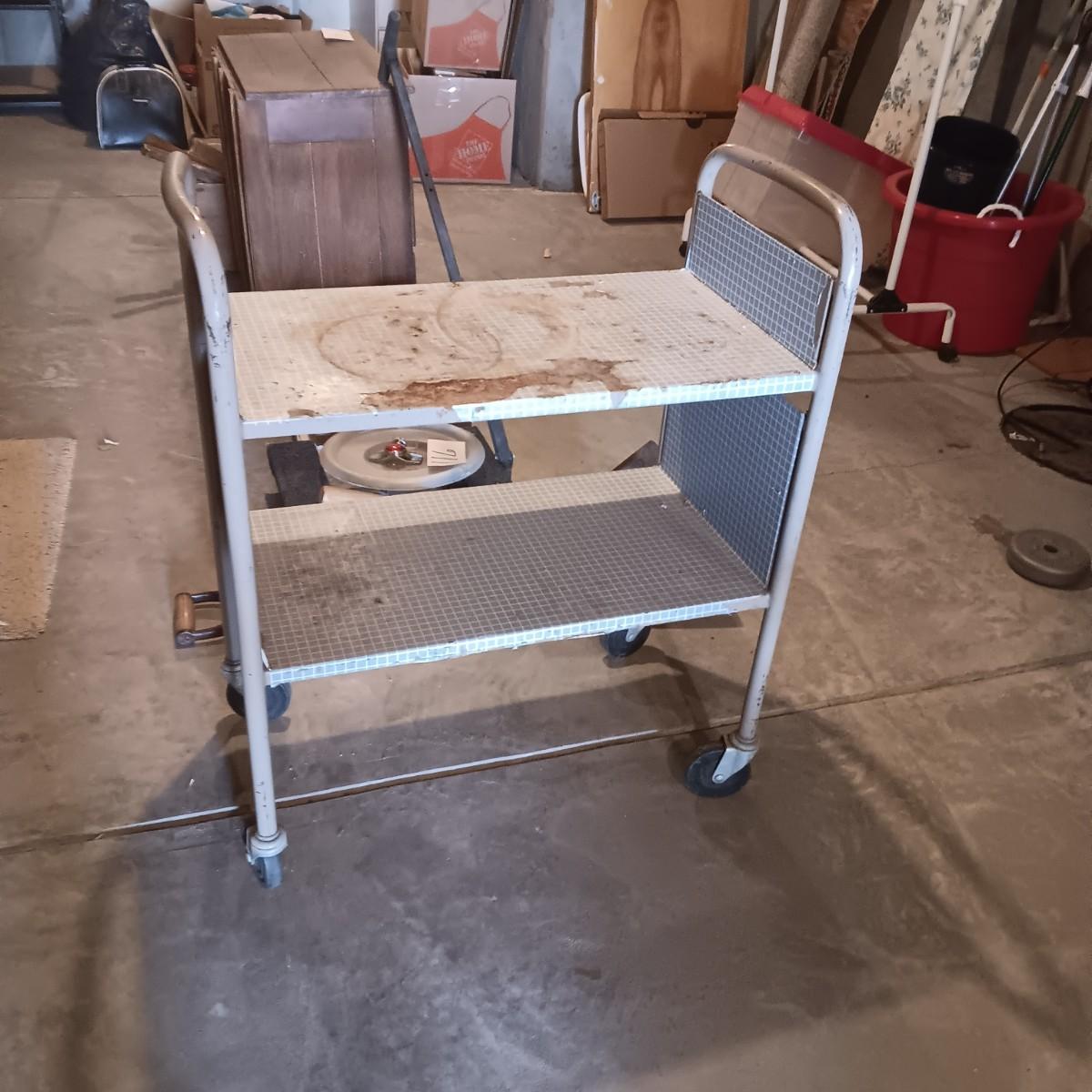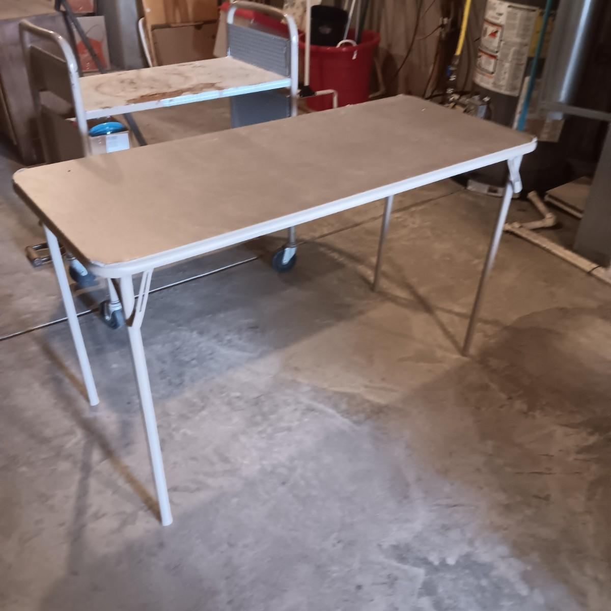 2 TIER LIBRARY CART ON WHEELS AND A 4 FOOT FOLDING TABLE
