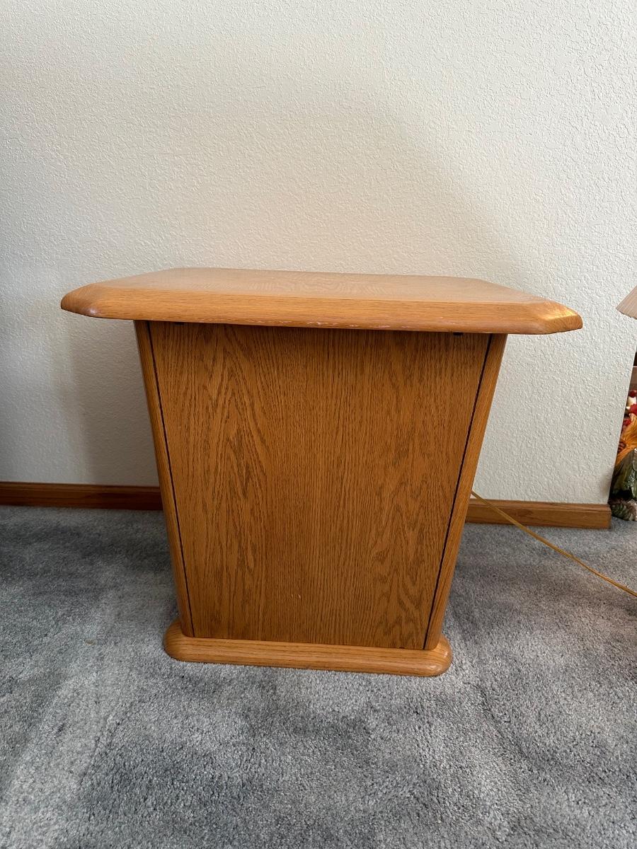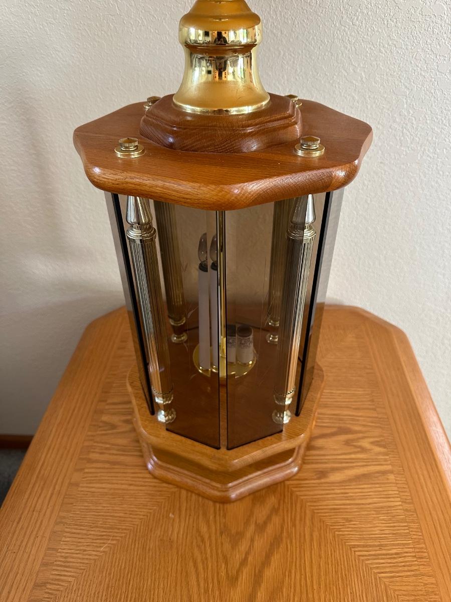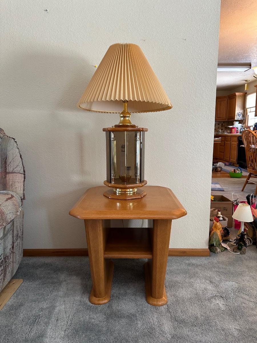 2 TIER OAK END TABLE WITH MULTI LIGHT LAMP