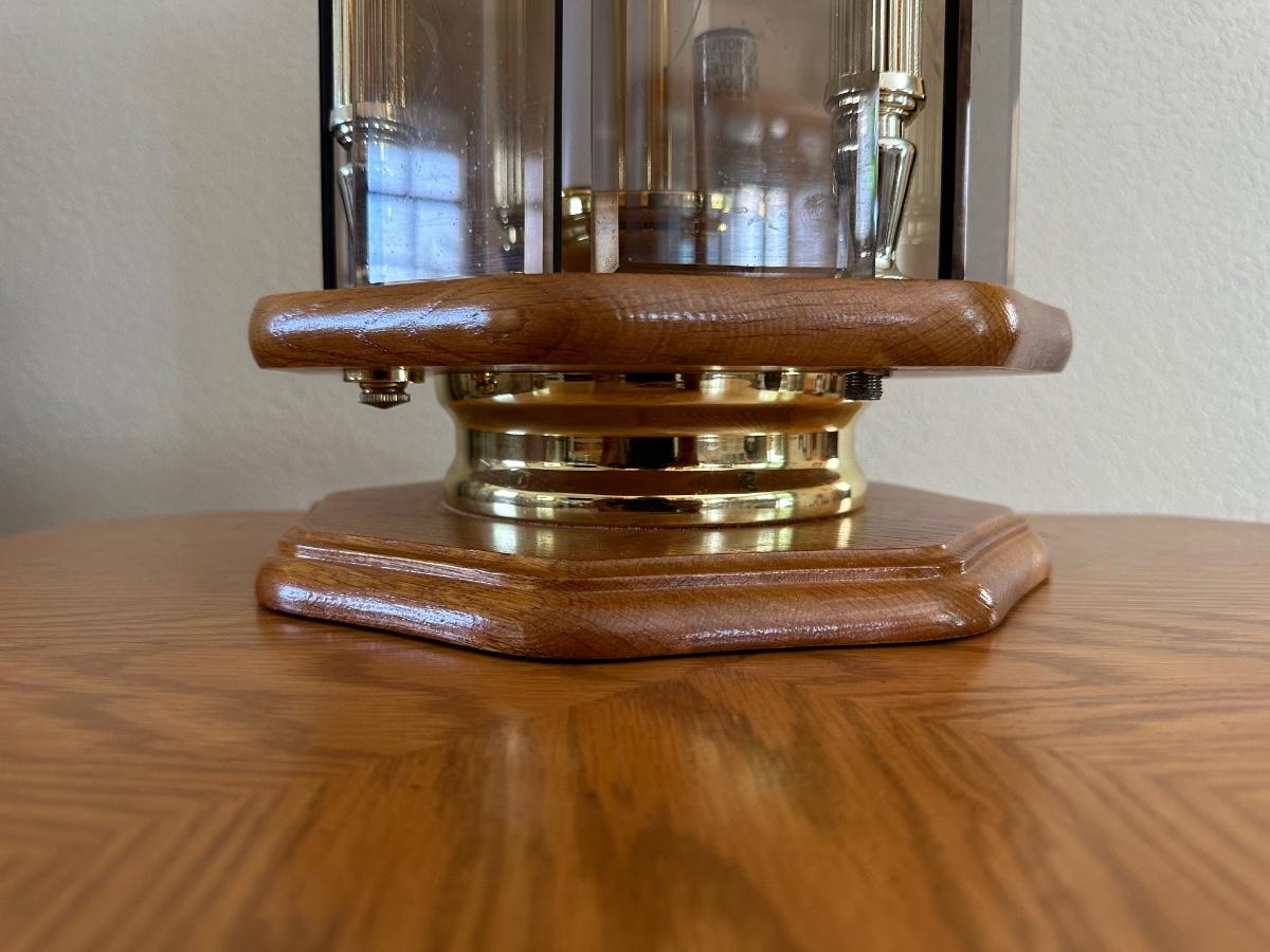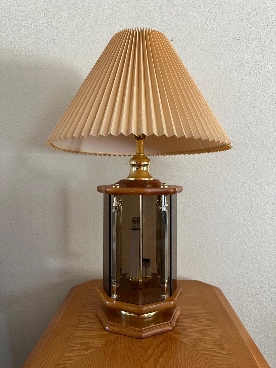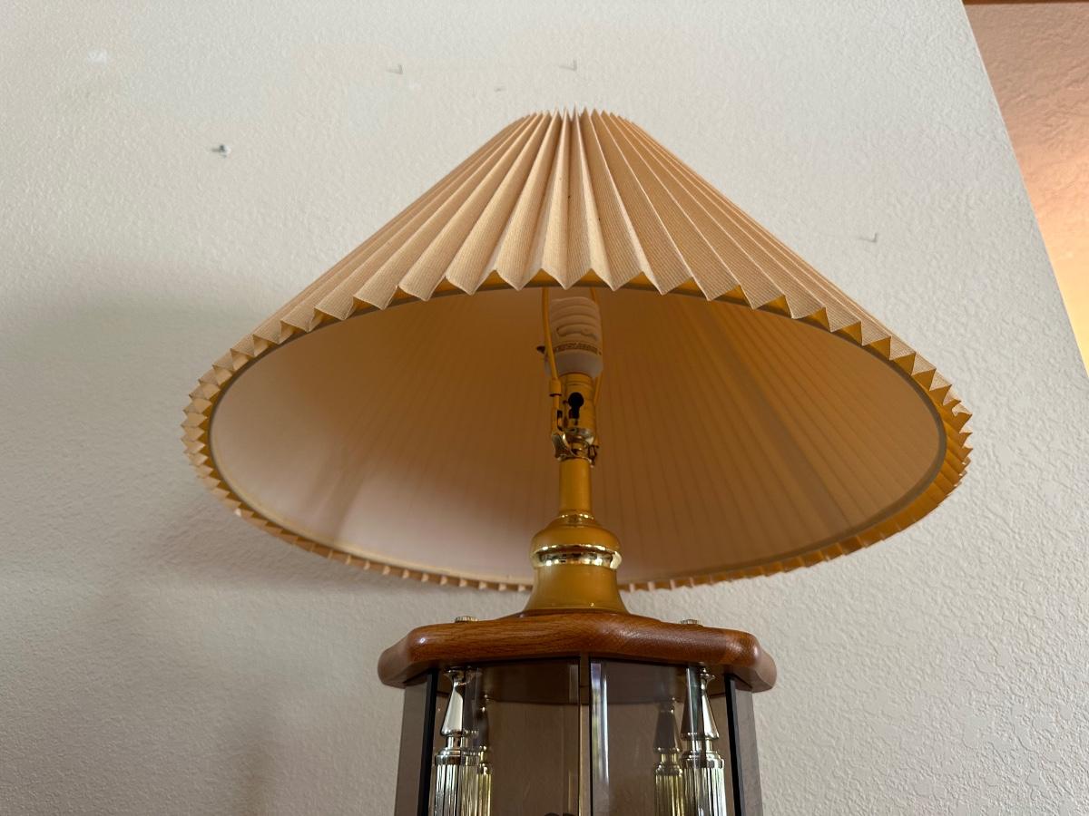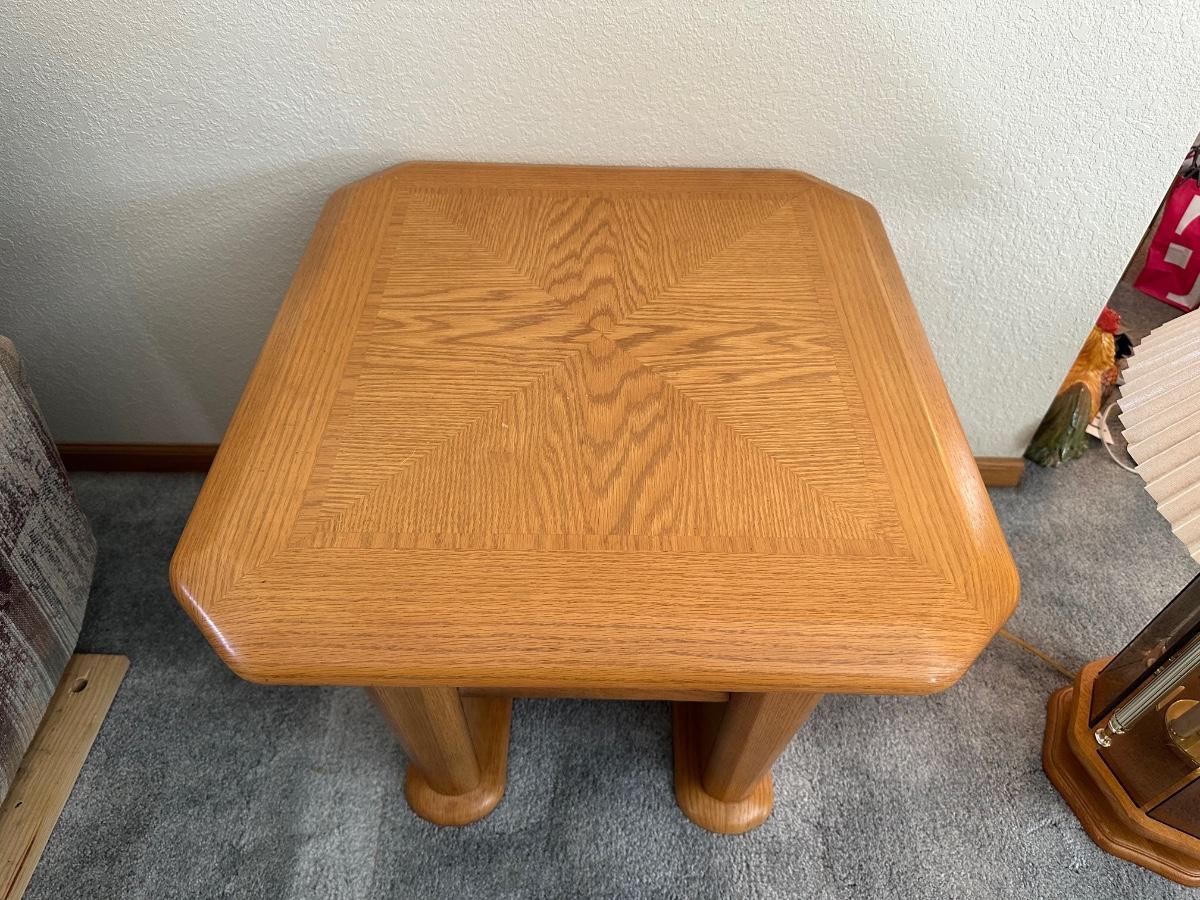 2 TIER OAK END TABLE WITH MULTI LIGHT LAMP