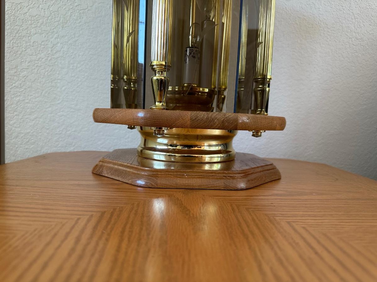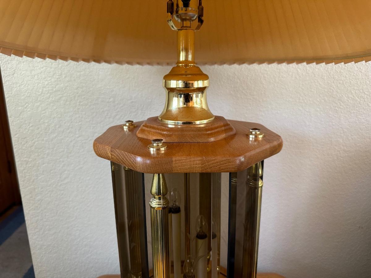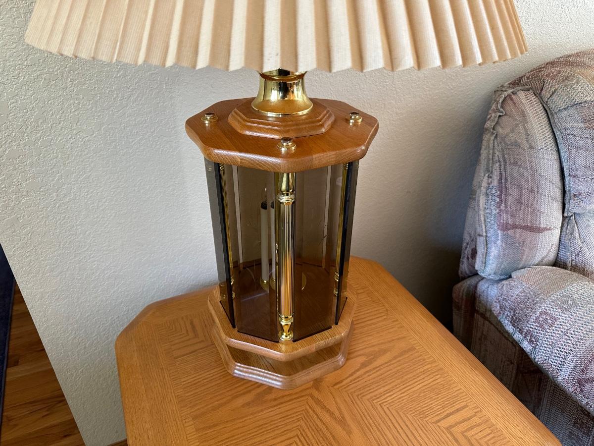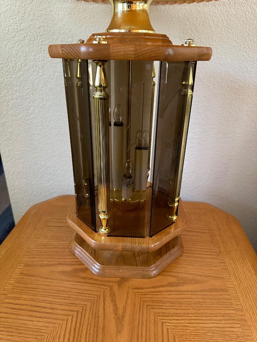 2 TIER OAK END TABLE WITH MULTI LIGHT LAMP