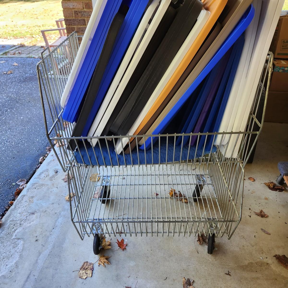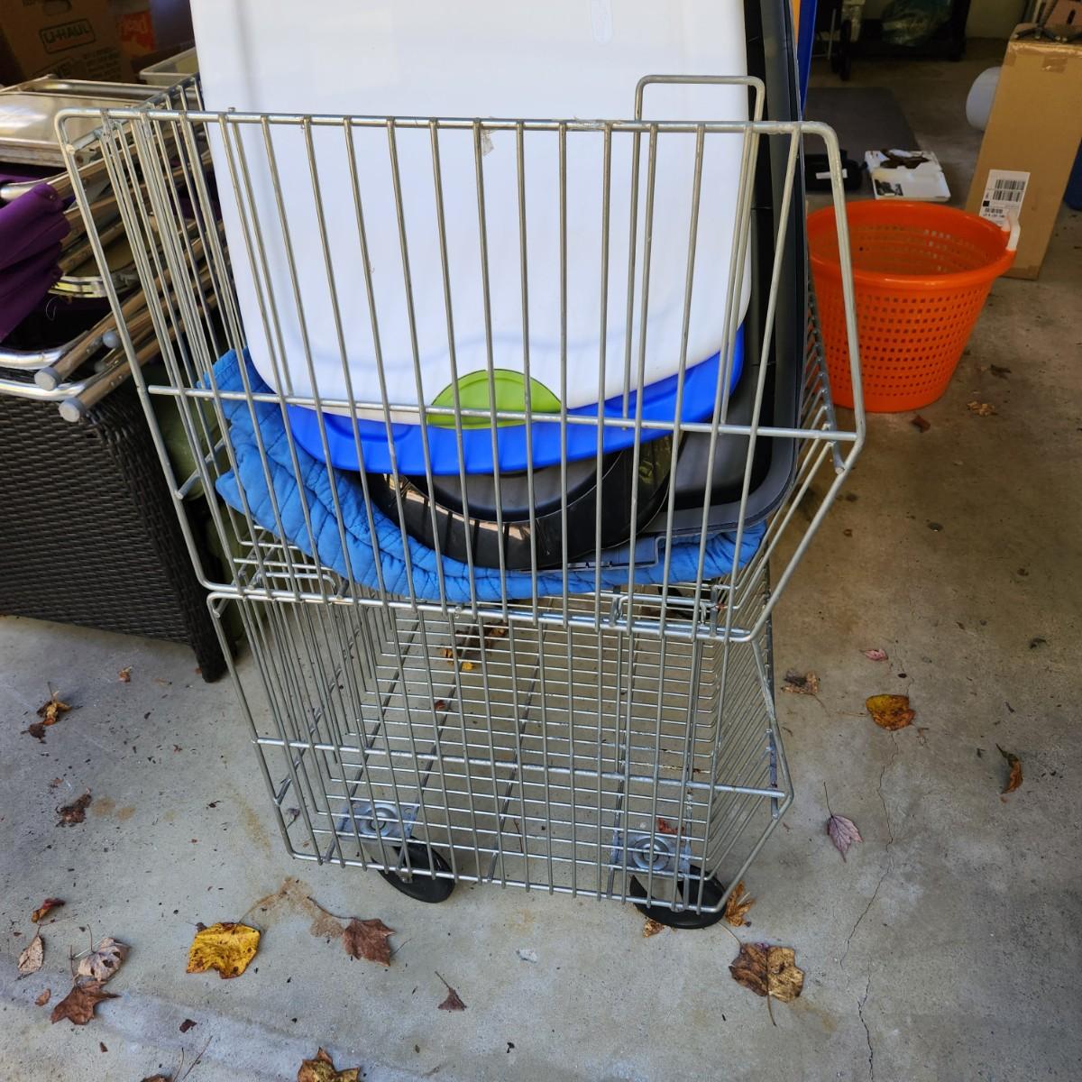 2 Tier Stackable Storage Wire Basket Dump Bin Cart Roll Around 29.5Wx 24"D