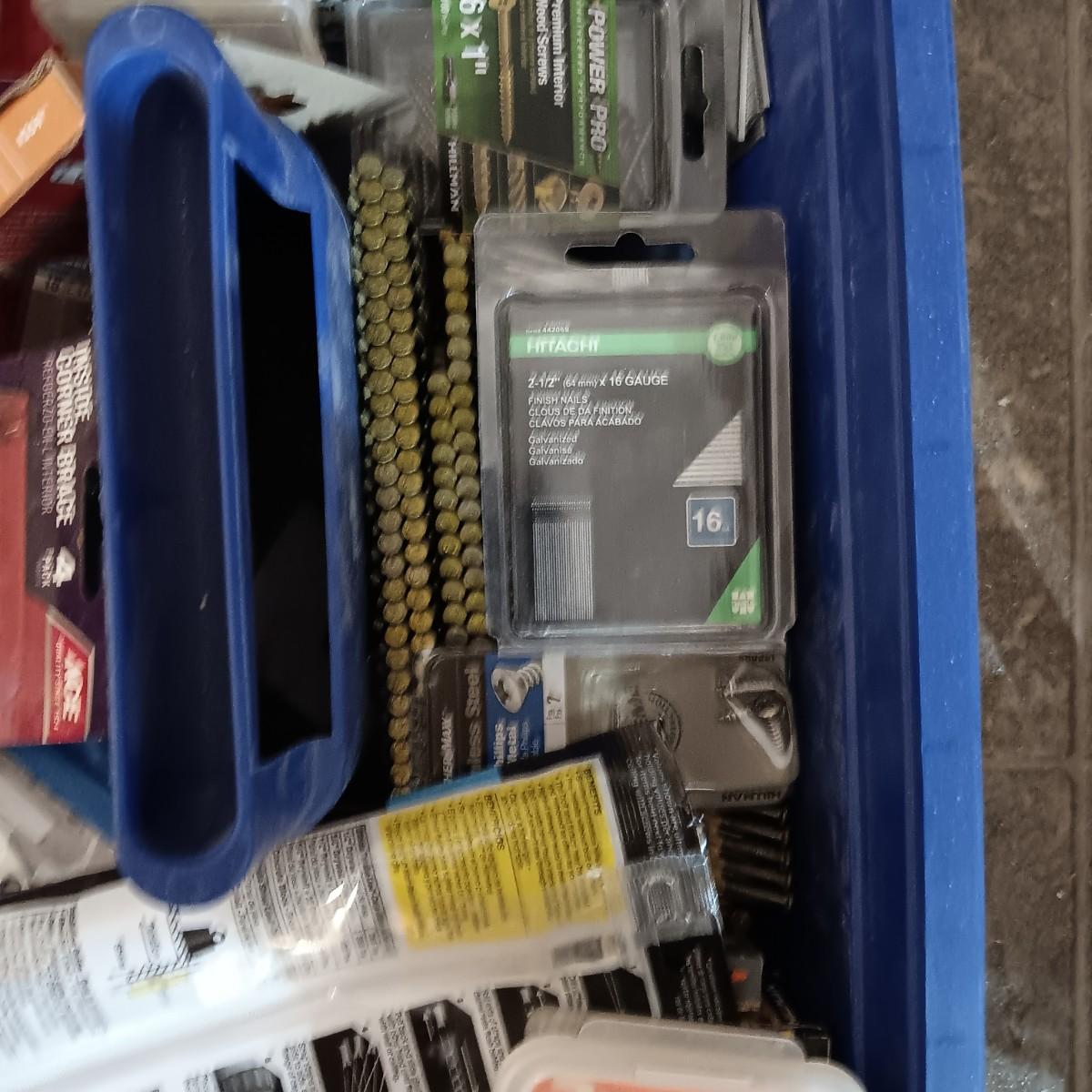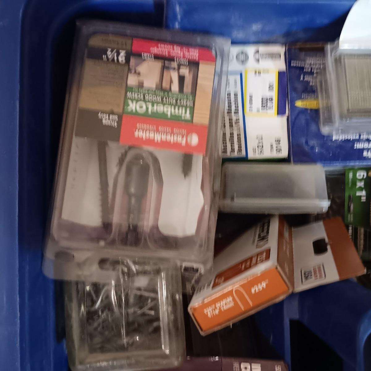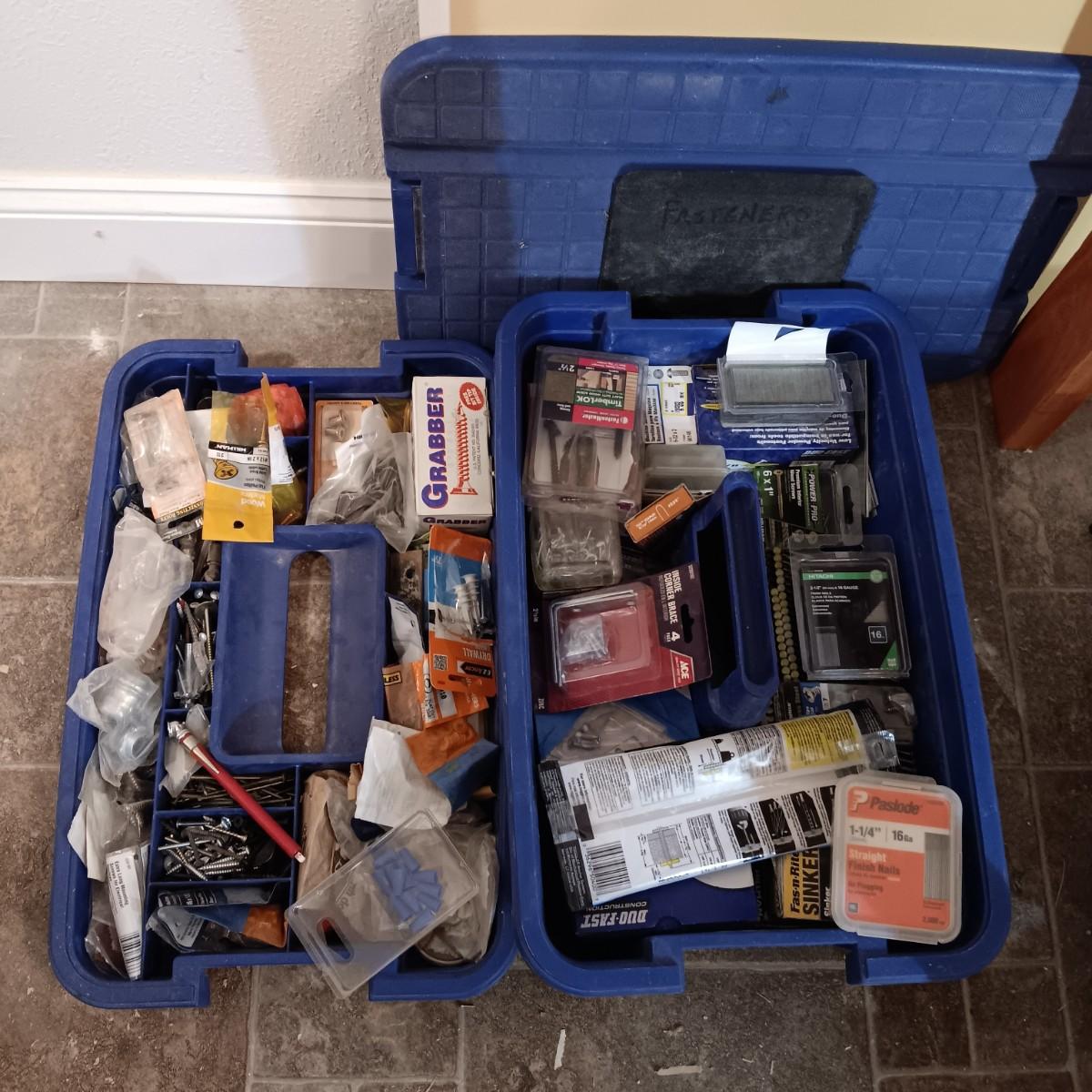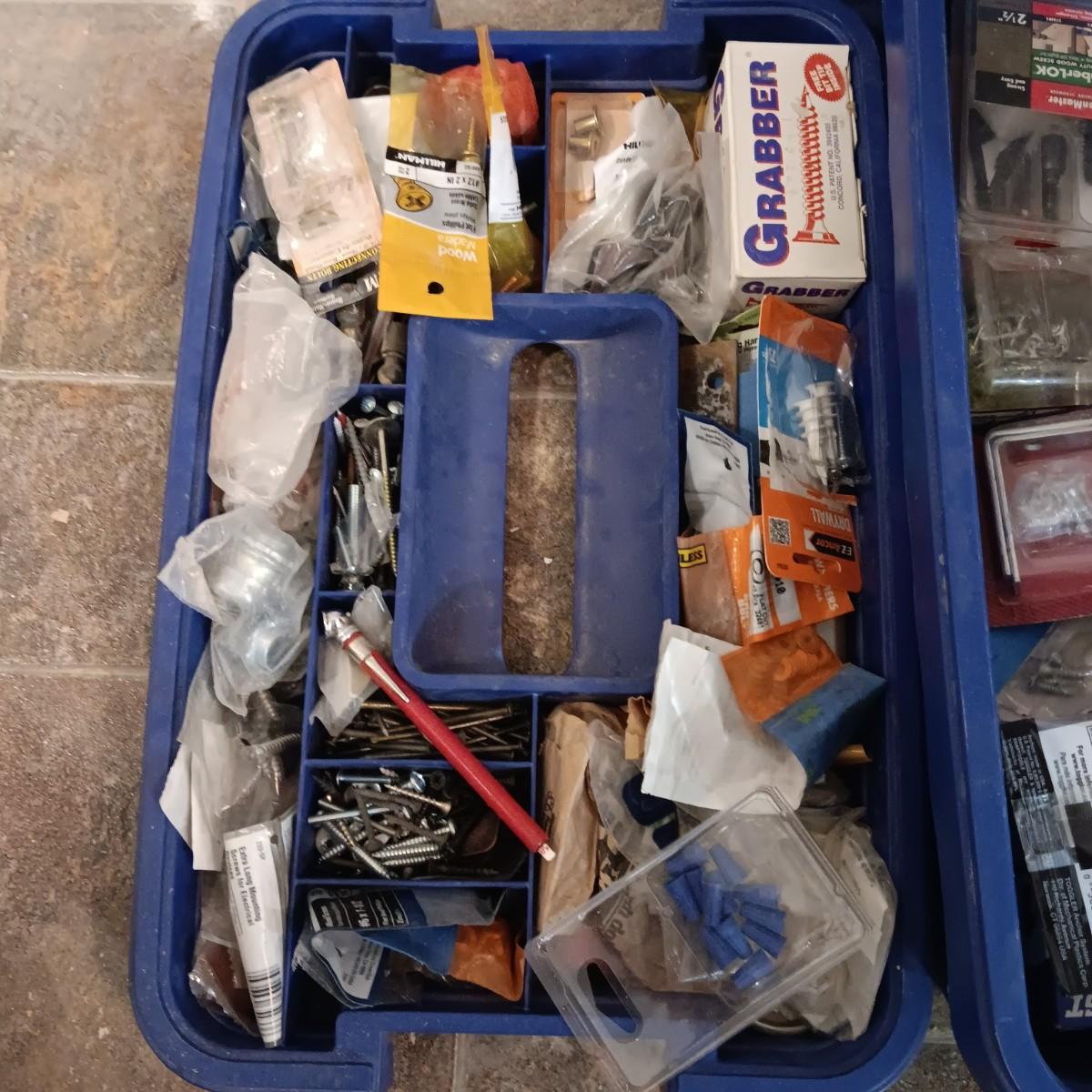 2 TIER TOTE FULL OF VARIOUS HARDWARE