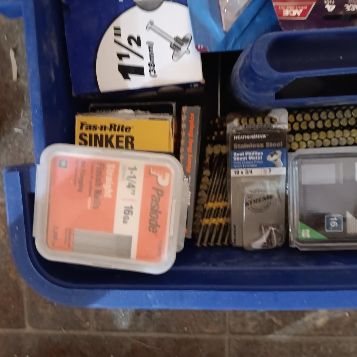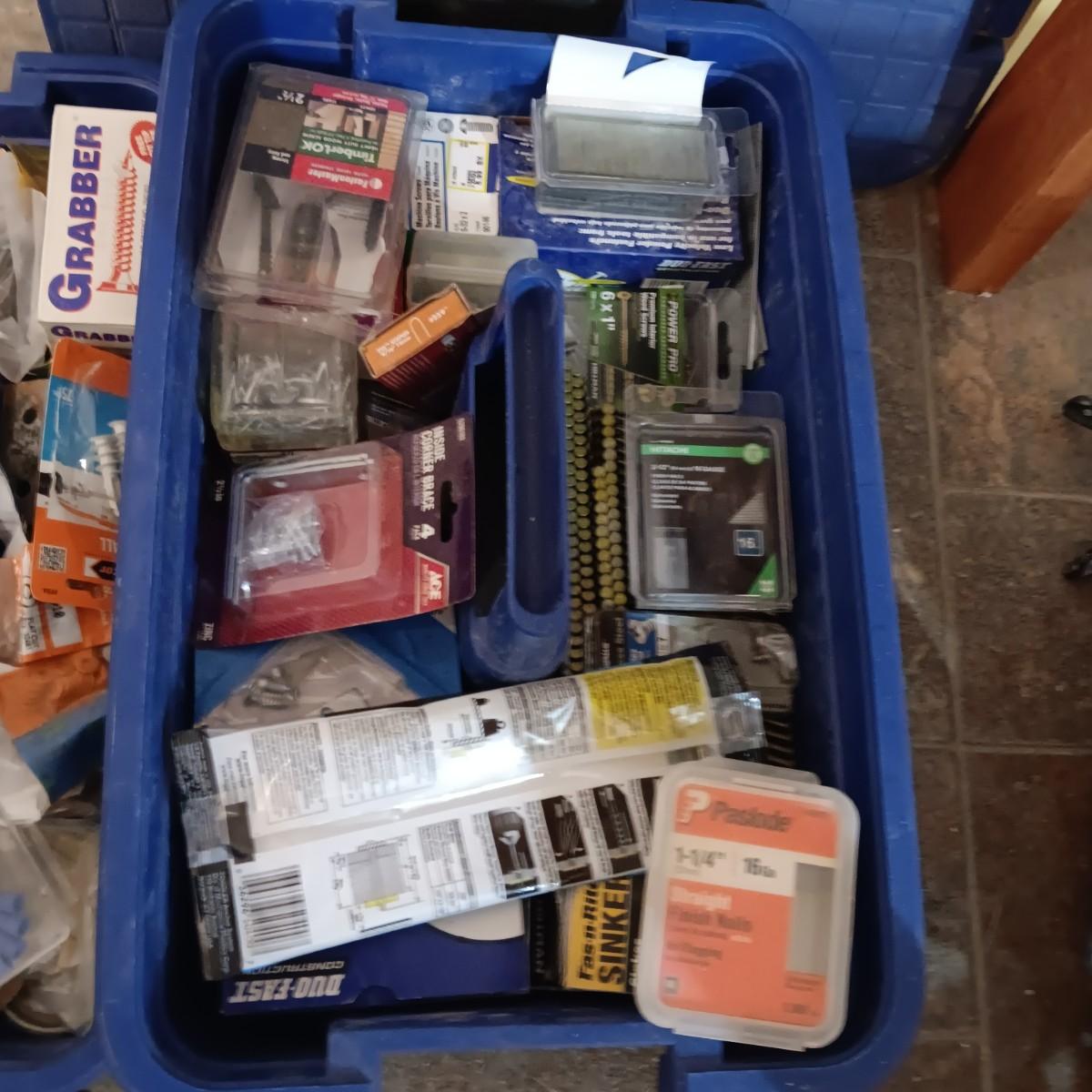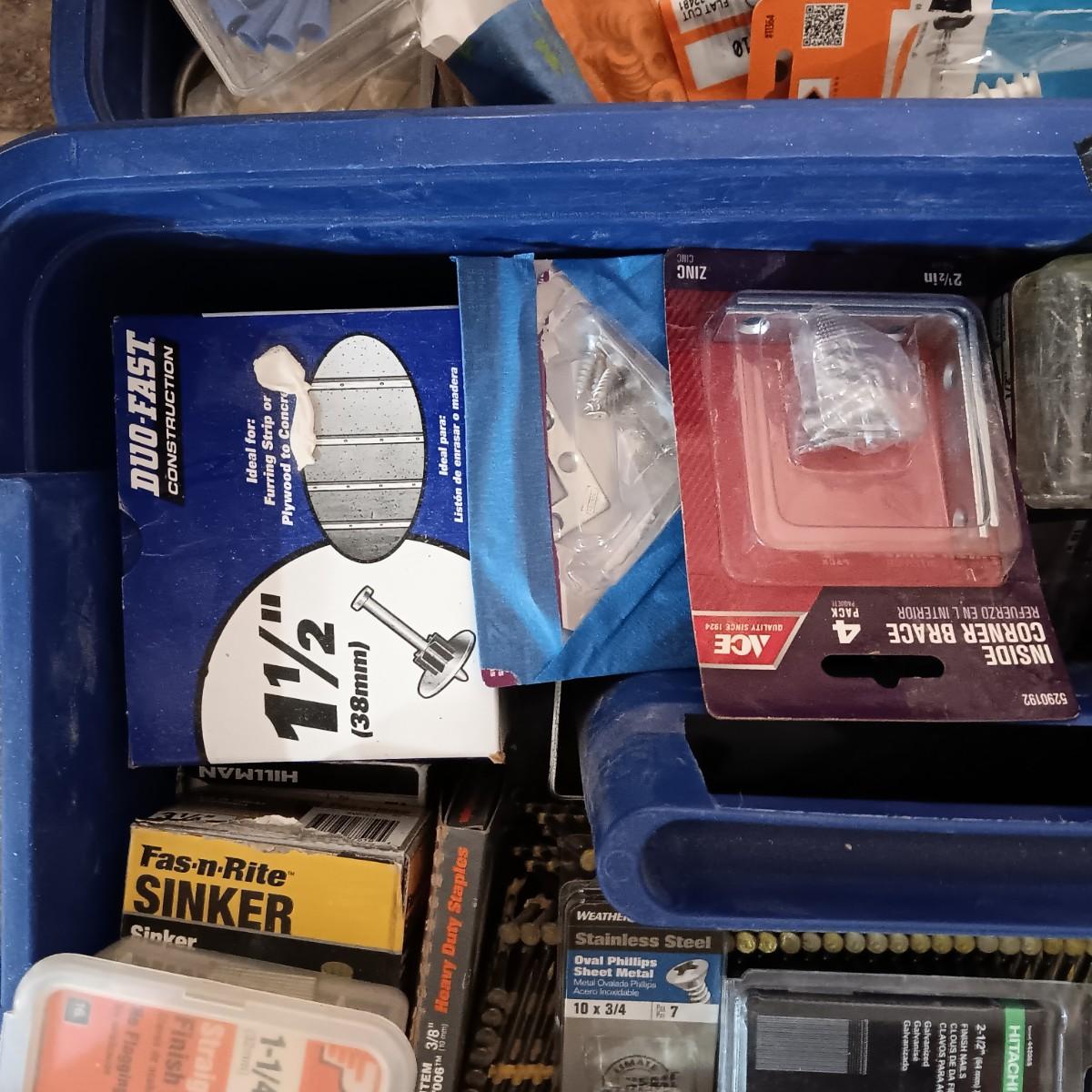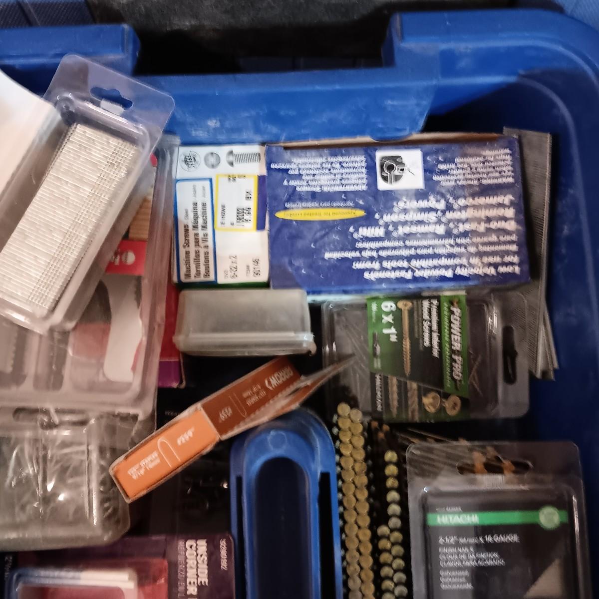 2 TIER TOTE FULL OF VARIOUS HARDWARE