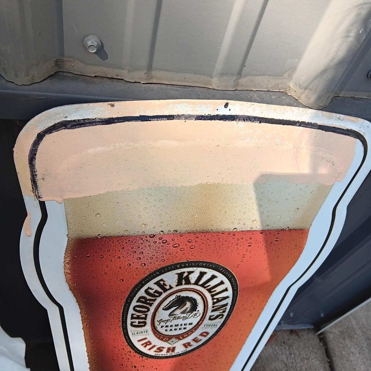 KILLIAN'S SIGN HAS SOME PAINT ALONG THE TOP, LOOKS LIKE IT COULD BE REMOVED