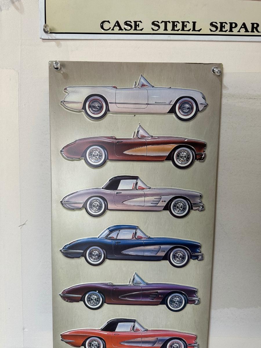 2 TIN SIGNS WITH RAISED ILLUSTRATIONS