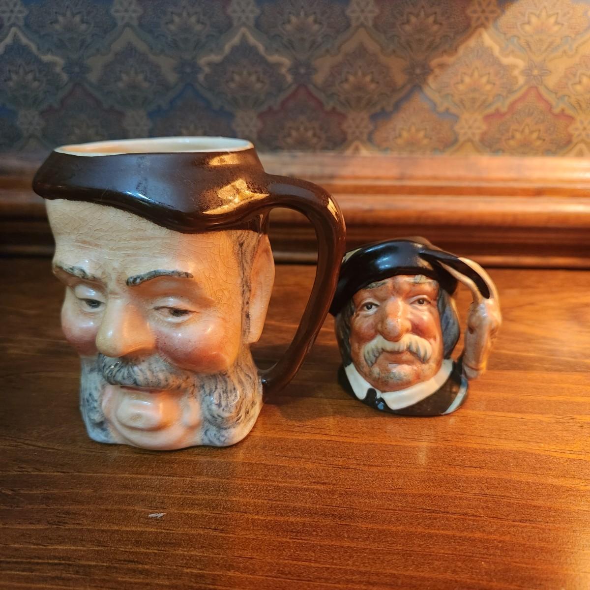 2 Toby Jug Mugs Sir John Falstaff Royal Doulton Sancho Panca w Donkey