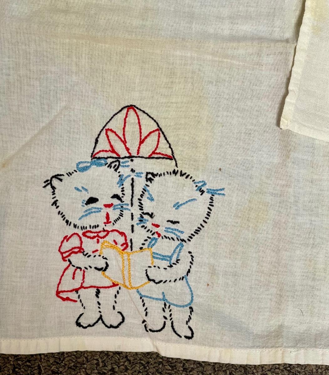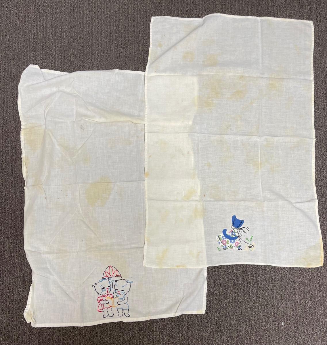 2 Embroidered 100.% Cotton Vintage Tea / Kitchen towels Kittens and Hollie Hobby