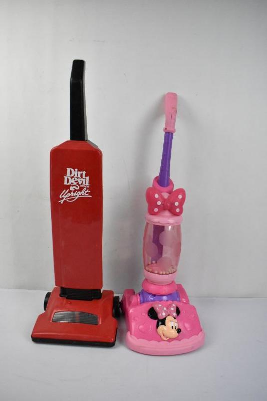 2 Toy Vacuums: Red Little Devil & Minnie Mouse