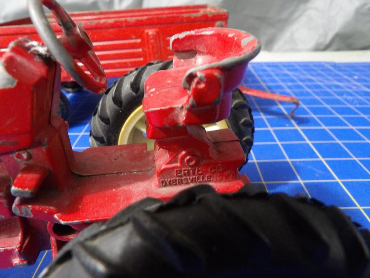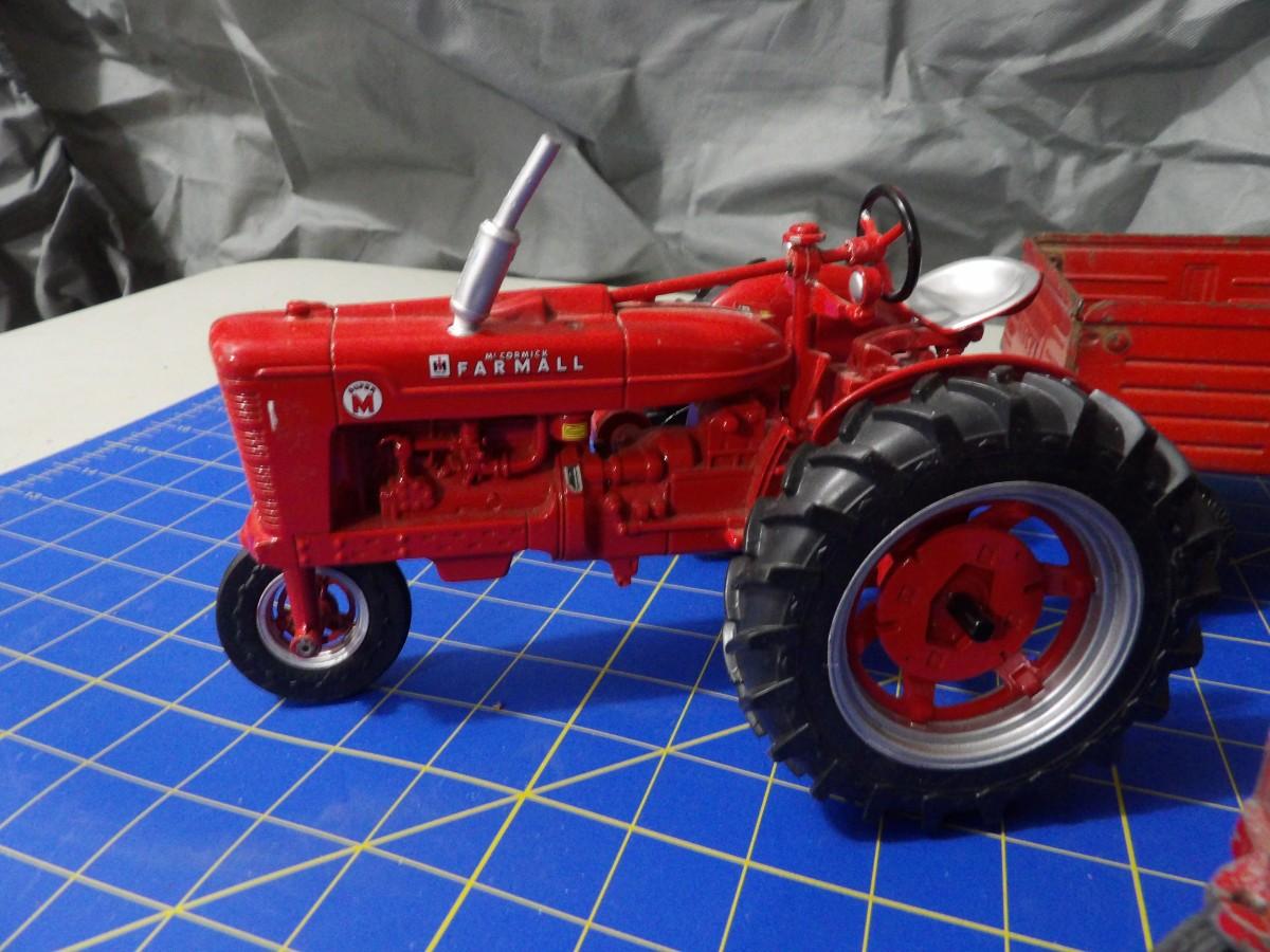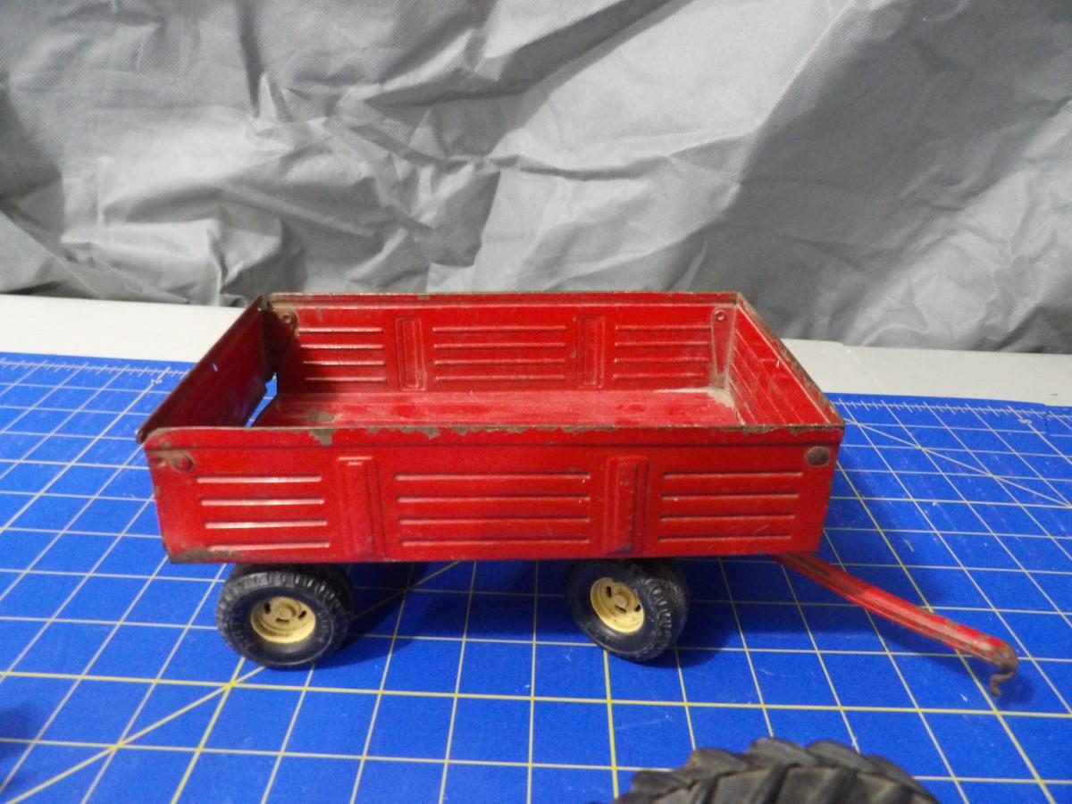 Ertl tractor and wagon. Note missing wheel on one tractor.