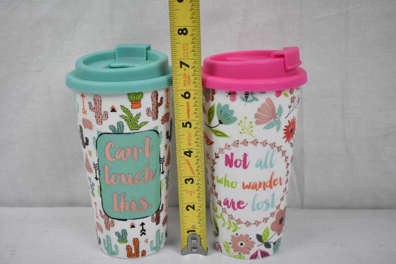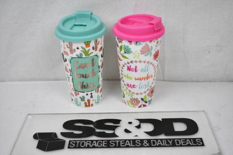 2 Travel Mugs: "Can't Touch This" & "Not all who Wander are Lost" - New