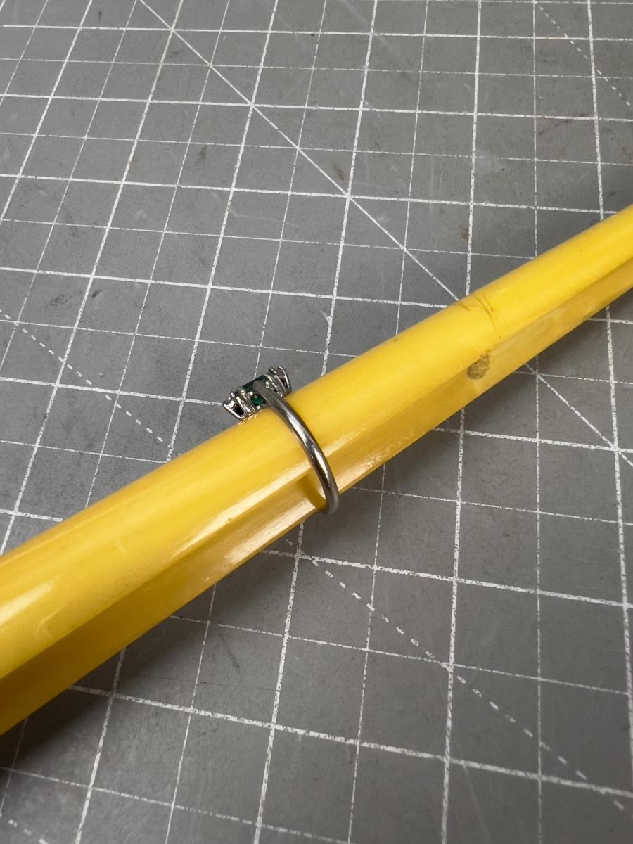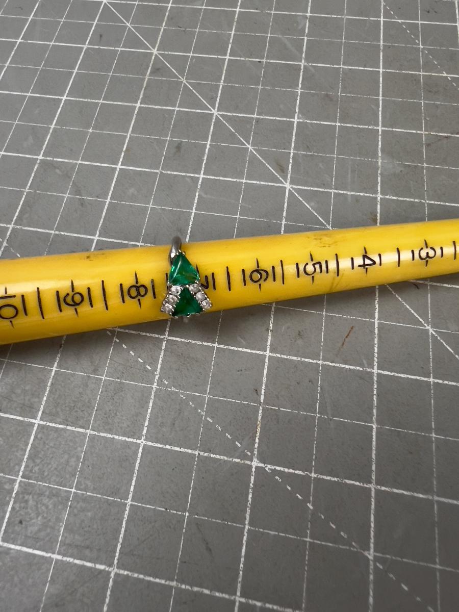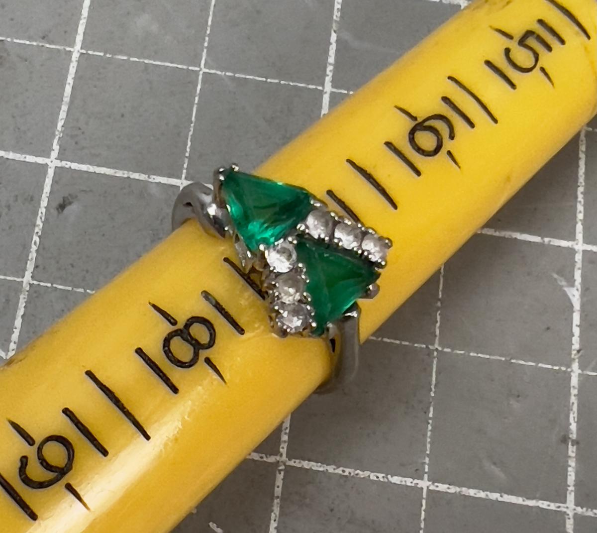 2 Triangle EMERALD RING Marked 10K Ring White GOLD