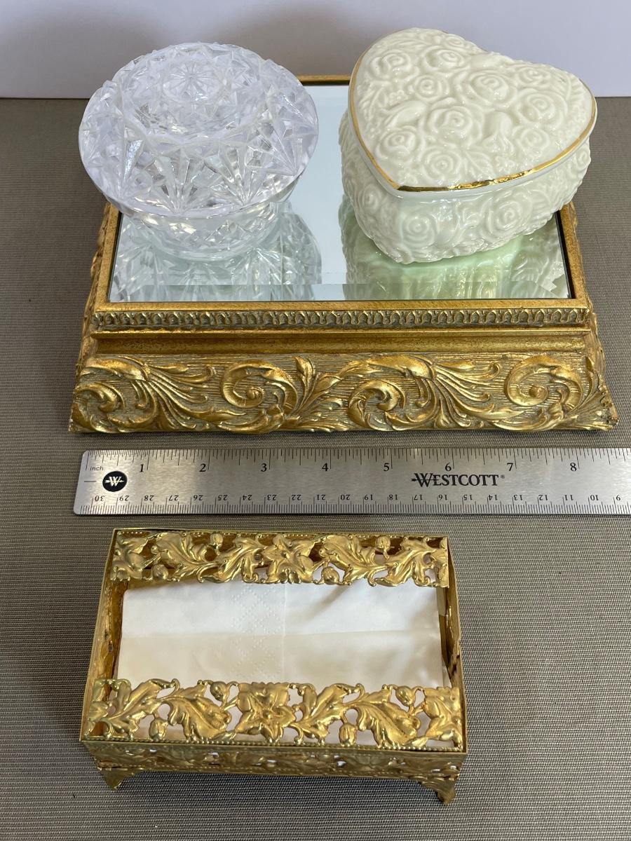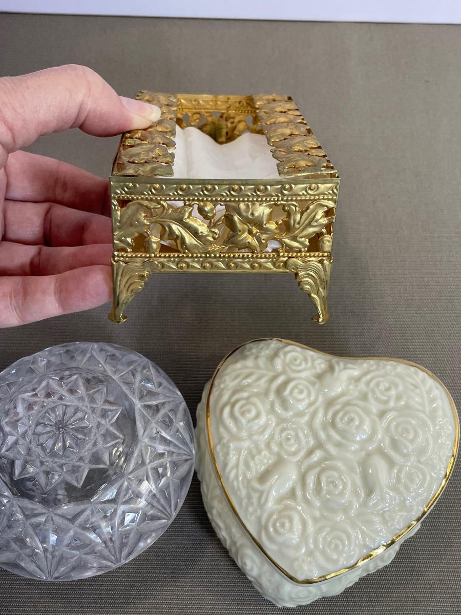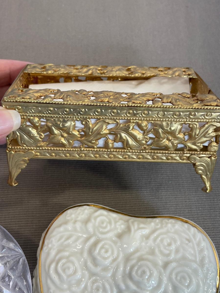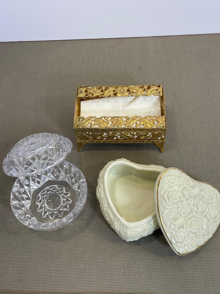 2 Trinket Boxes and Mini Vintage Tissue holder