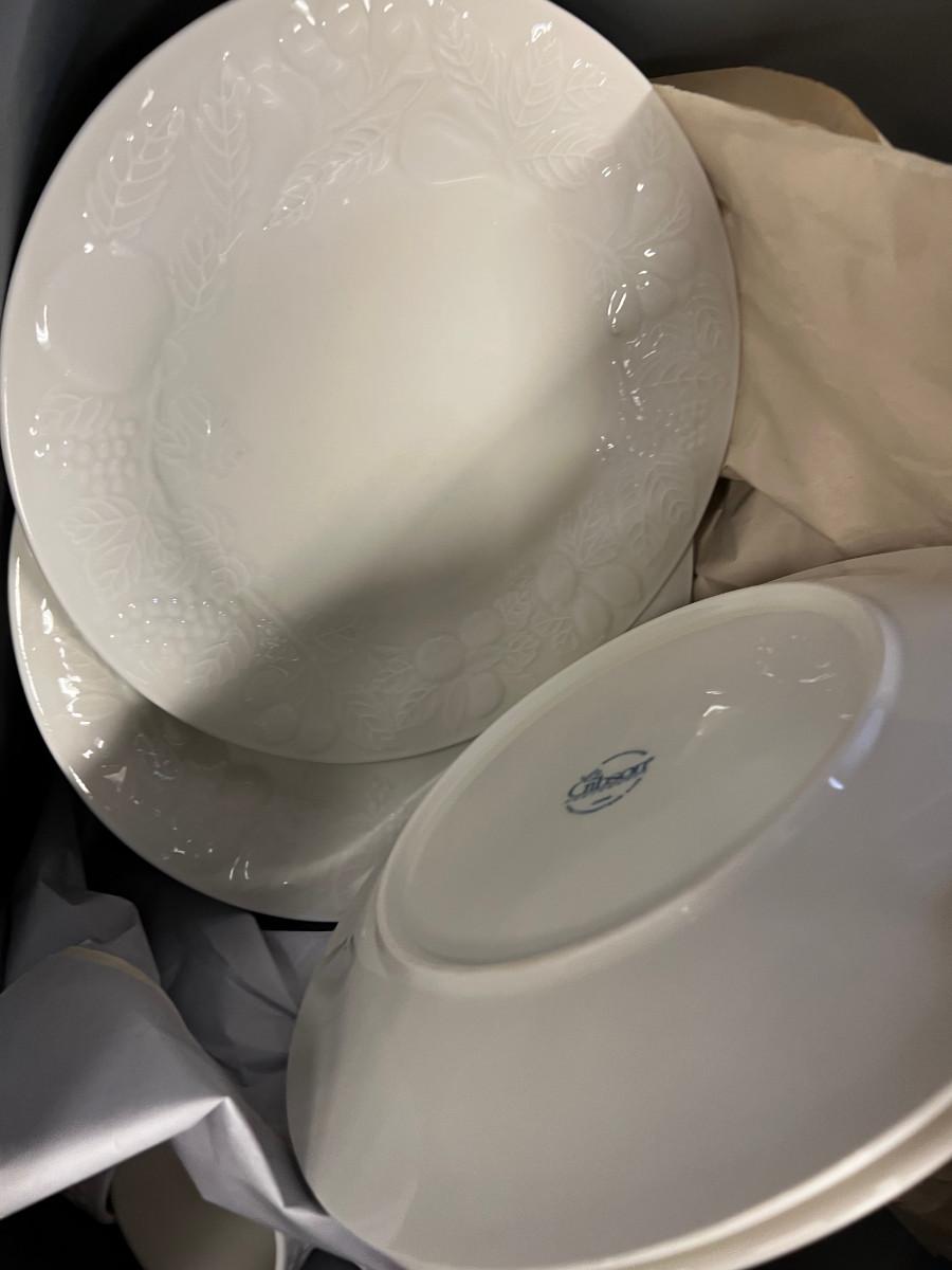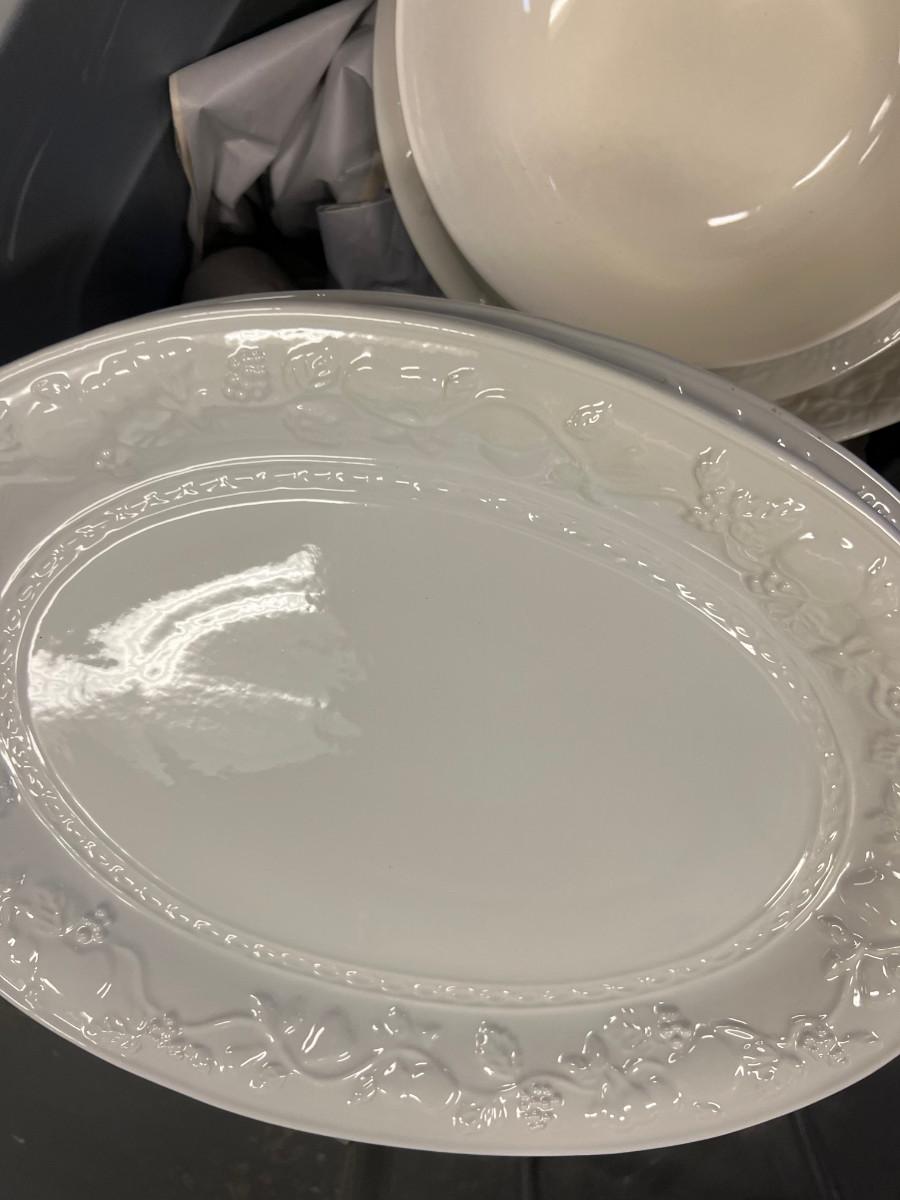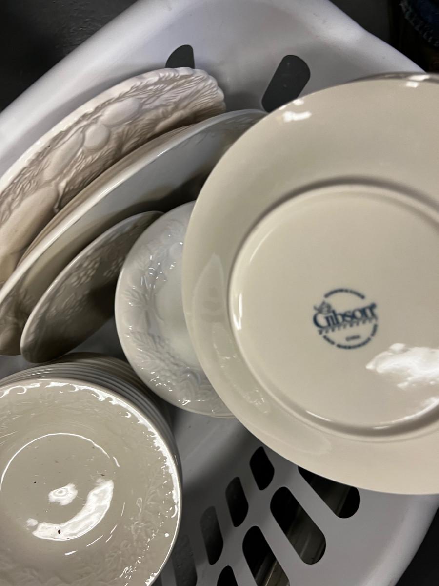 2 Tub Loads of Gibson White Dishes and Platters, in a fruity design