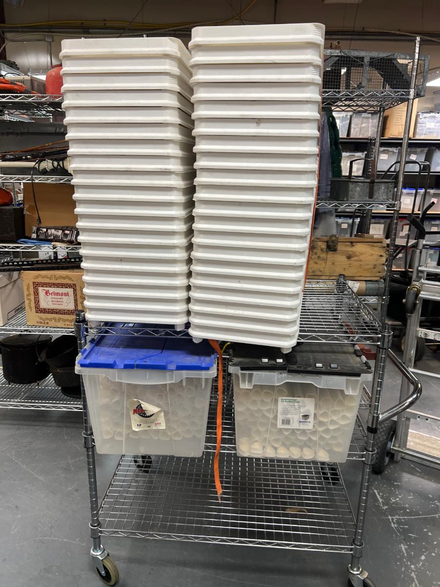 2 TUBS Full of PLASTIC Columns and Plastic Shelve