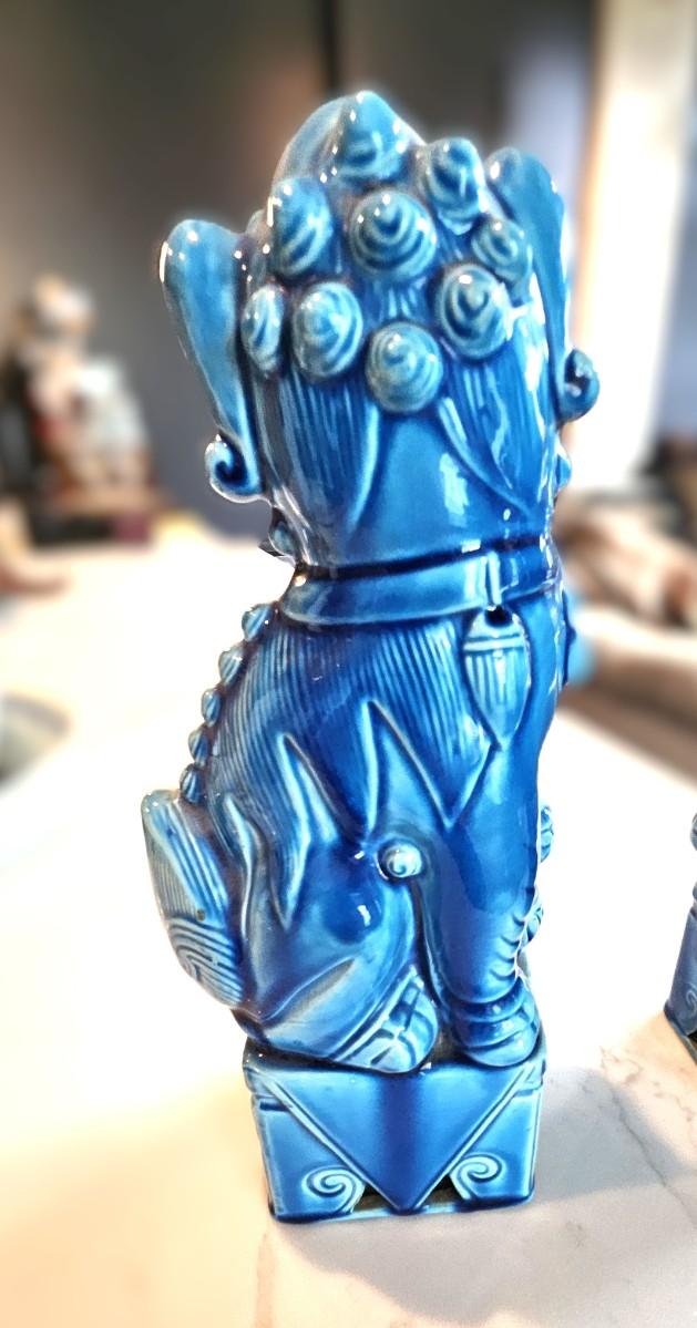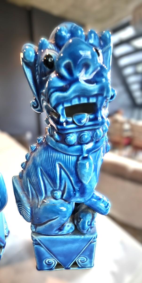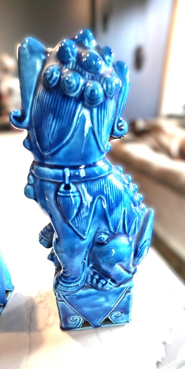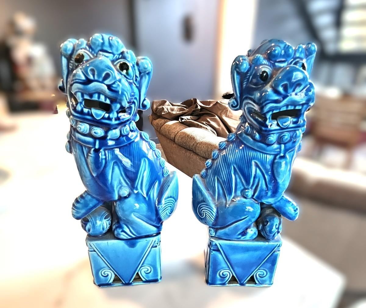 2 Turquoise Glazed FOO DOGS, 9 1/2H