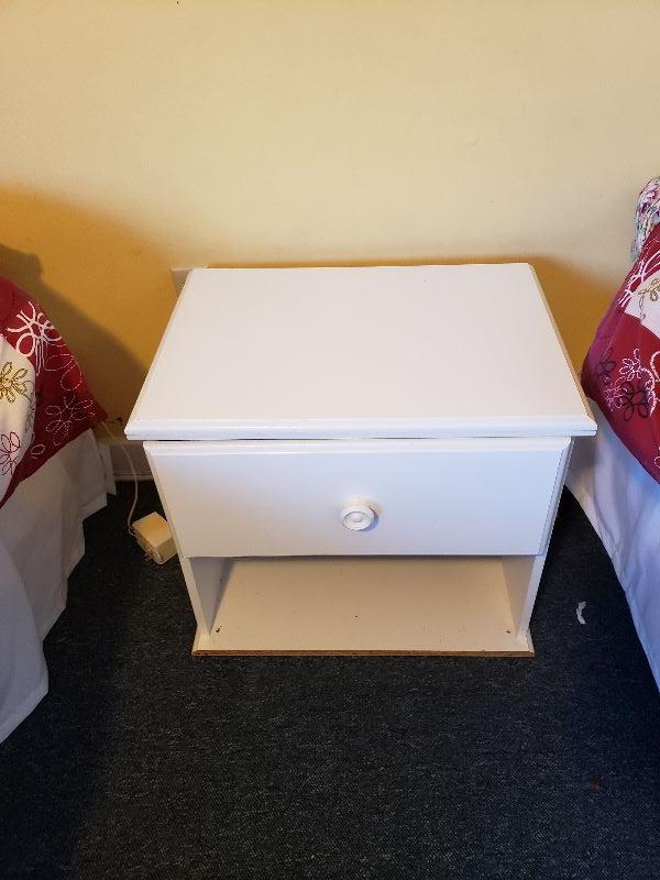 2 Twin Beds along with White Nightstand