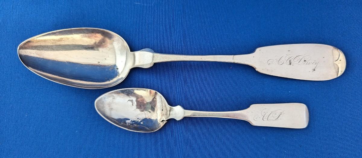 2 (two) coin silver spoons "ACD" and "AC Dewey" made by J Burritt & Son Ithaca