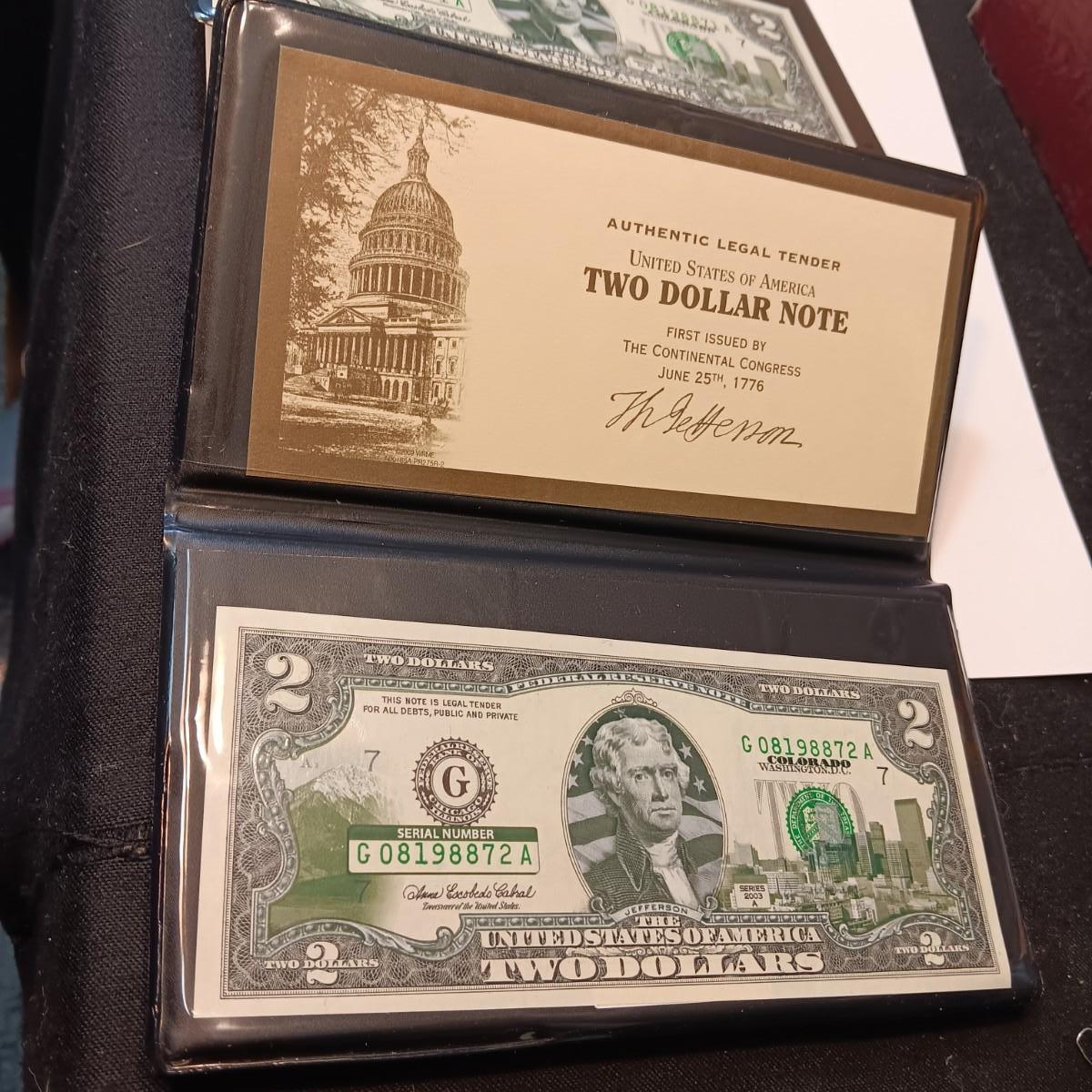 2 - TWO DOLLAR NOTES (Authentic legal tender) IN PROTECTIVE CASE (3)