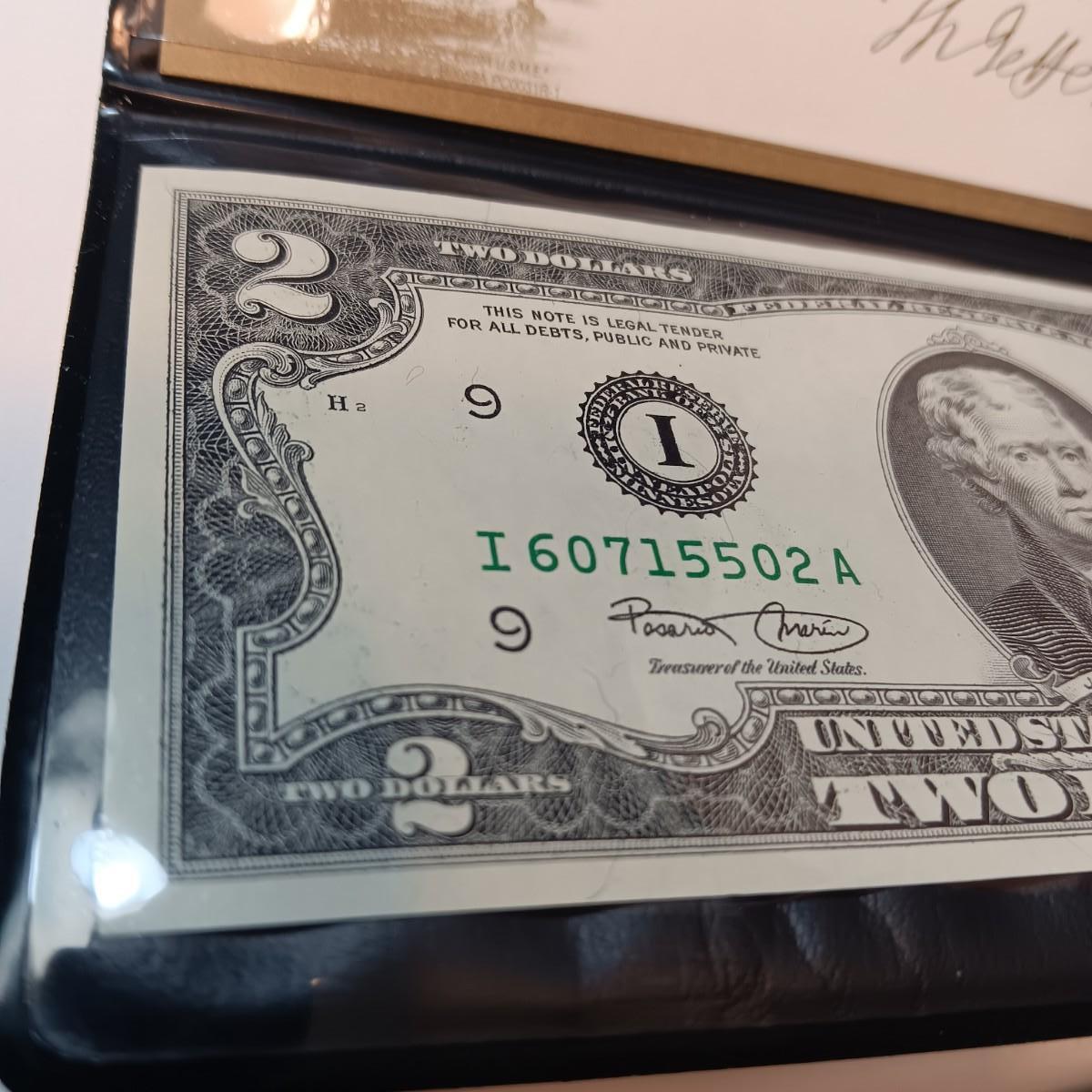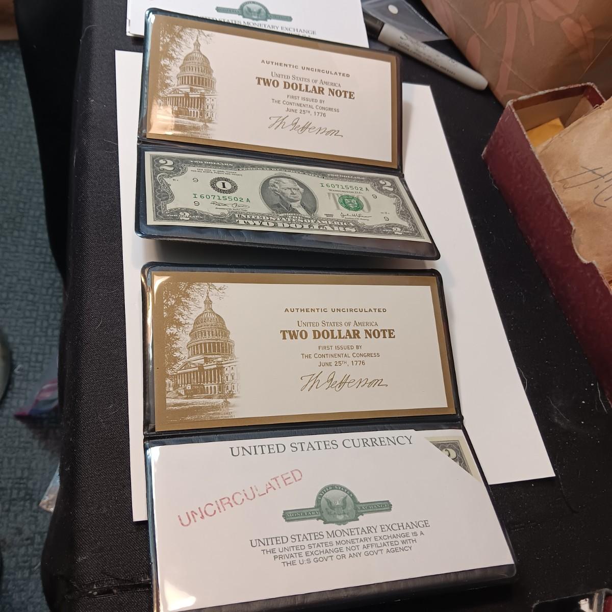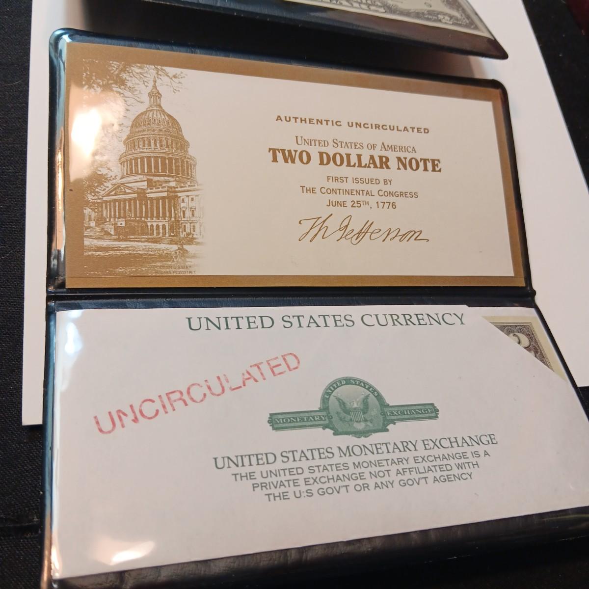 2 - UNC TWO DOLLAR NOTES (Authentic legal tender) IN PROTECTIVE CASE (5)