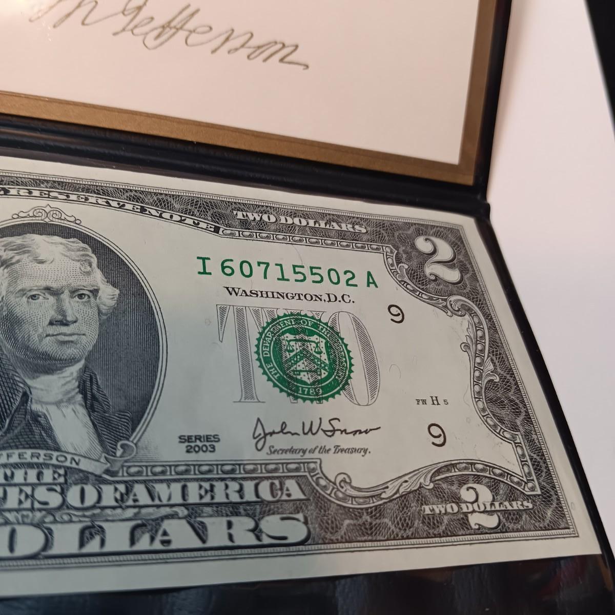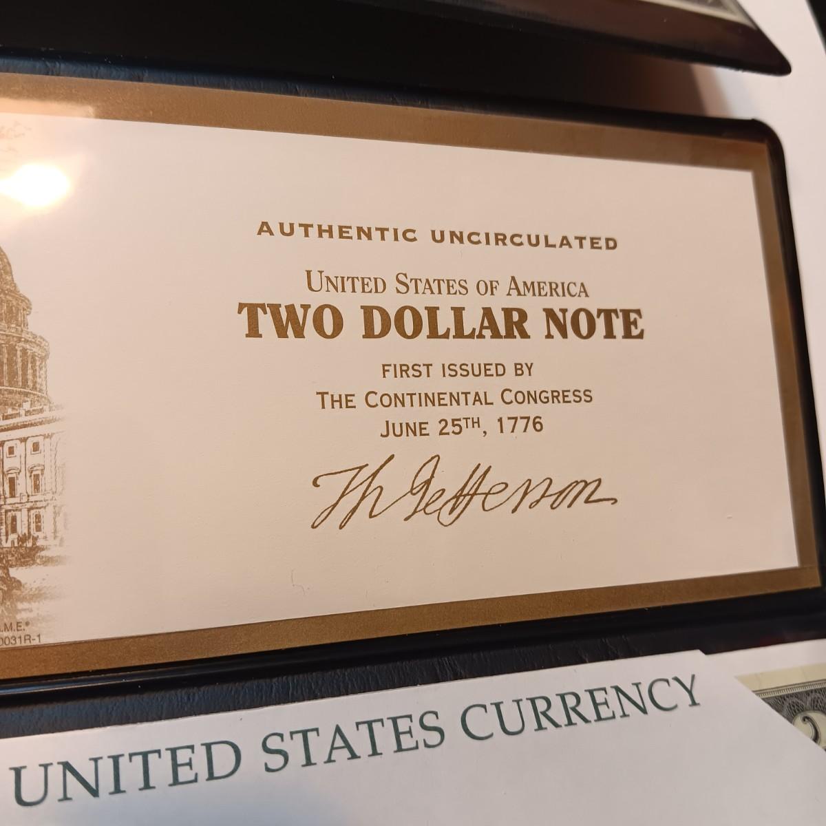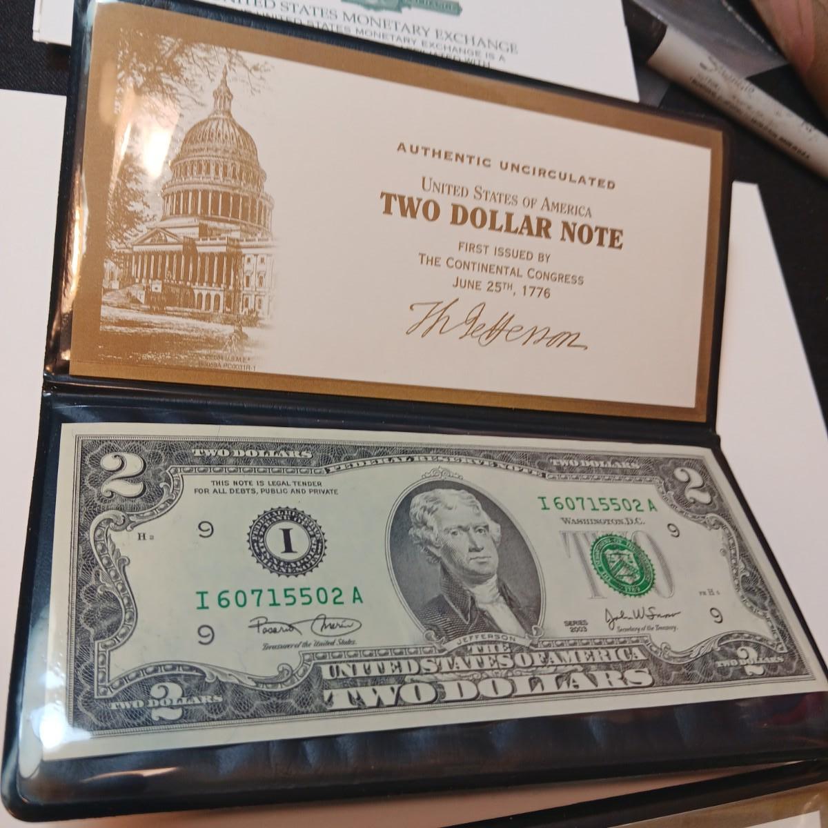 2 - UNC TWO DOLLAR NOTES (Authentic legal tender) IN PROTECTIVE CASE (5)