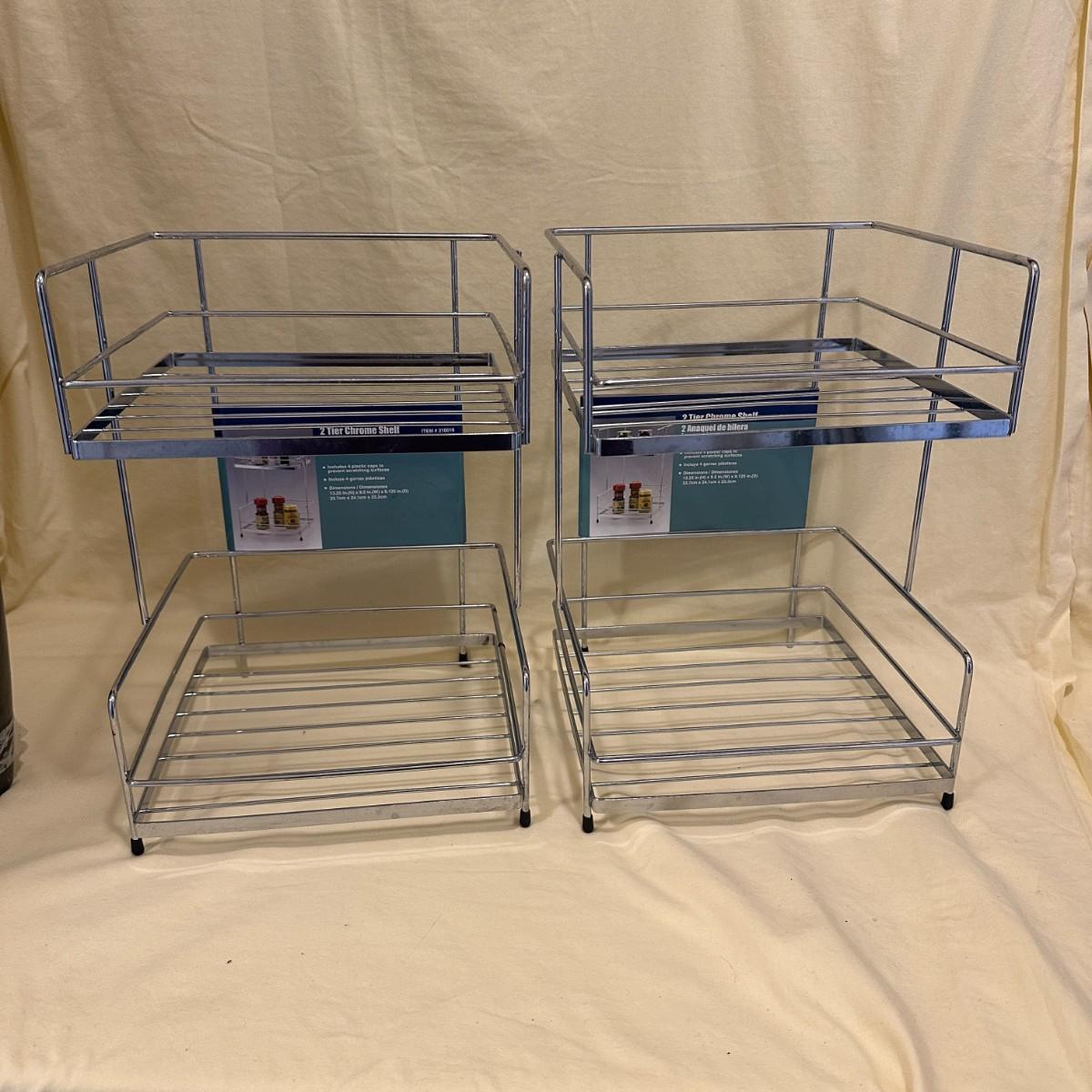 2 Two Tier Chrome Shelves, New- Storage for Kitchen, Bathroom, Etc.
