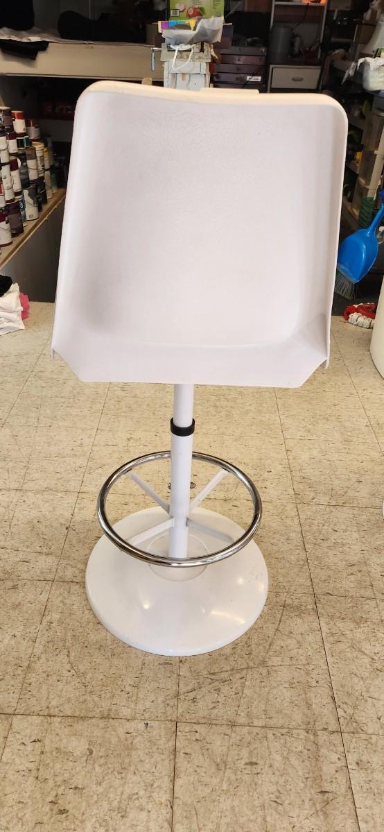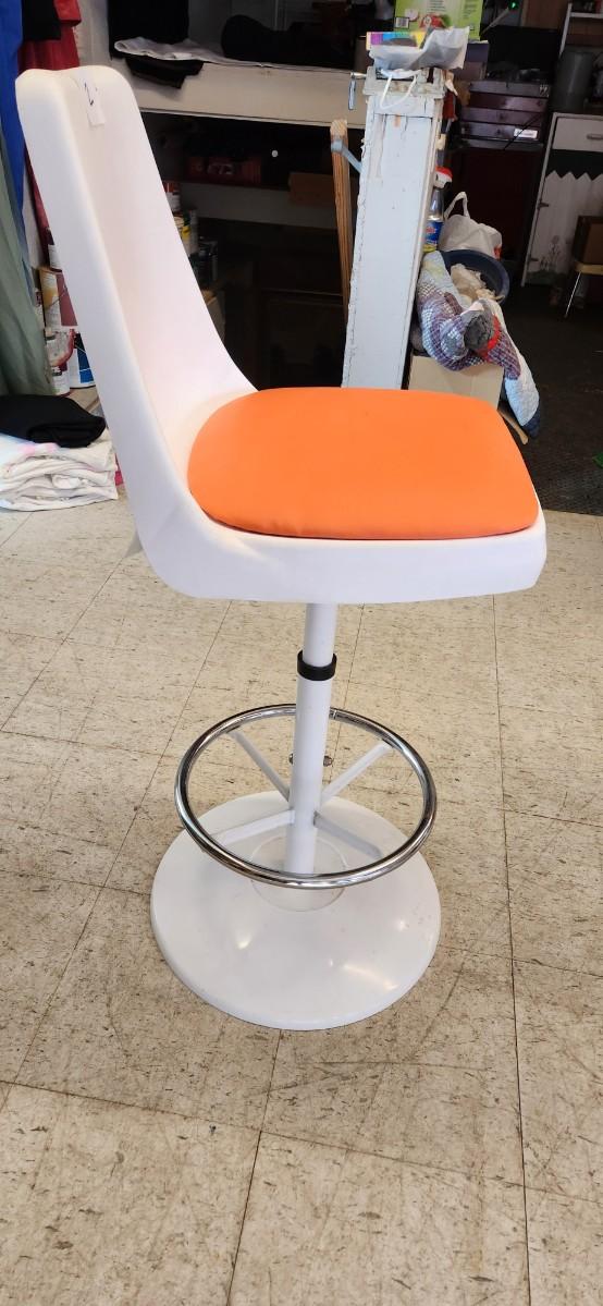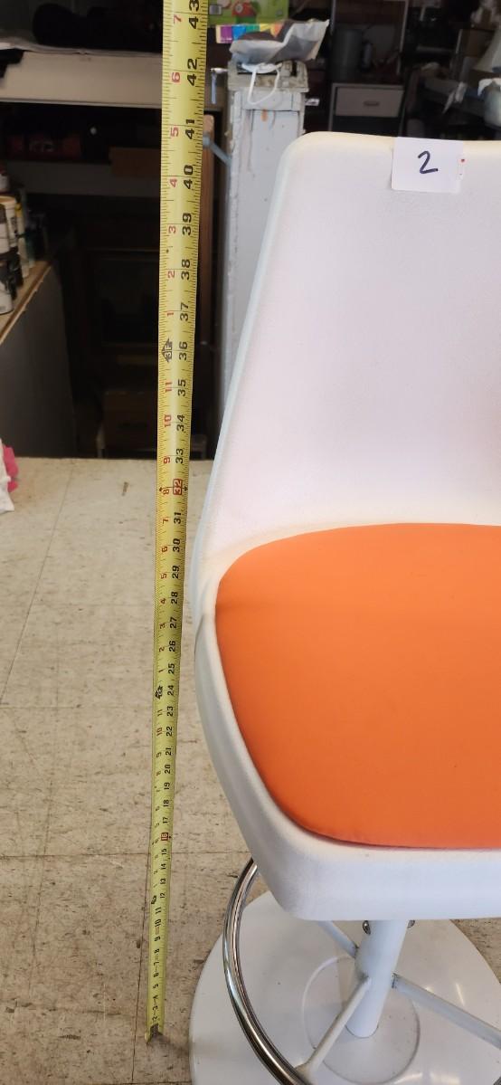 You are bidding on one stool! There are 5 available. Arthur Umanoff designed with new orange upholstery. These are adjustable to 4 heights between 23" and 29"from floor to seat. This listing is the stool marked #2