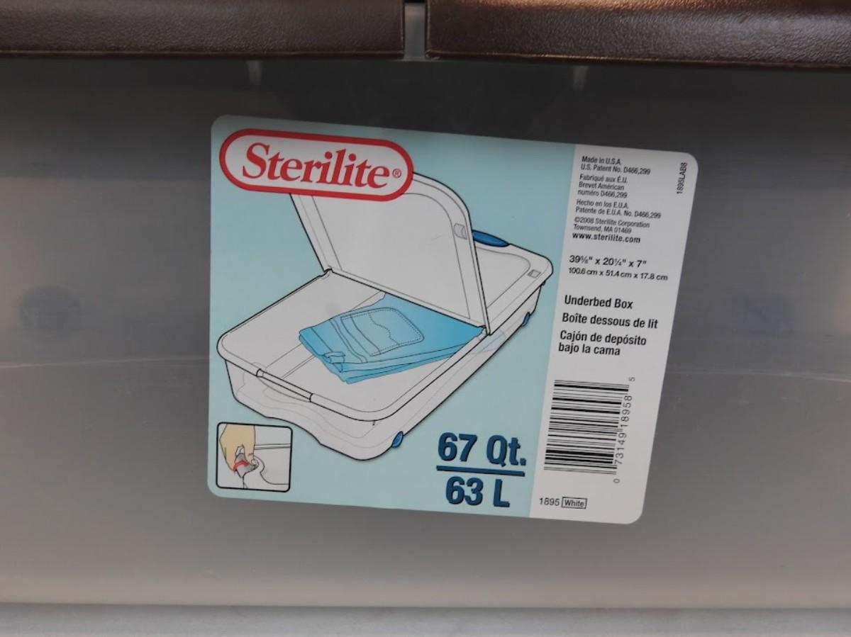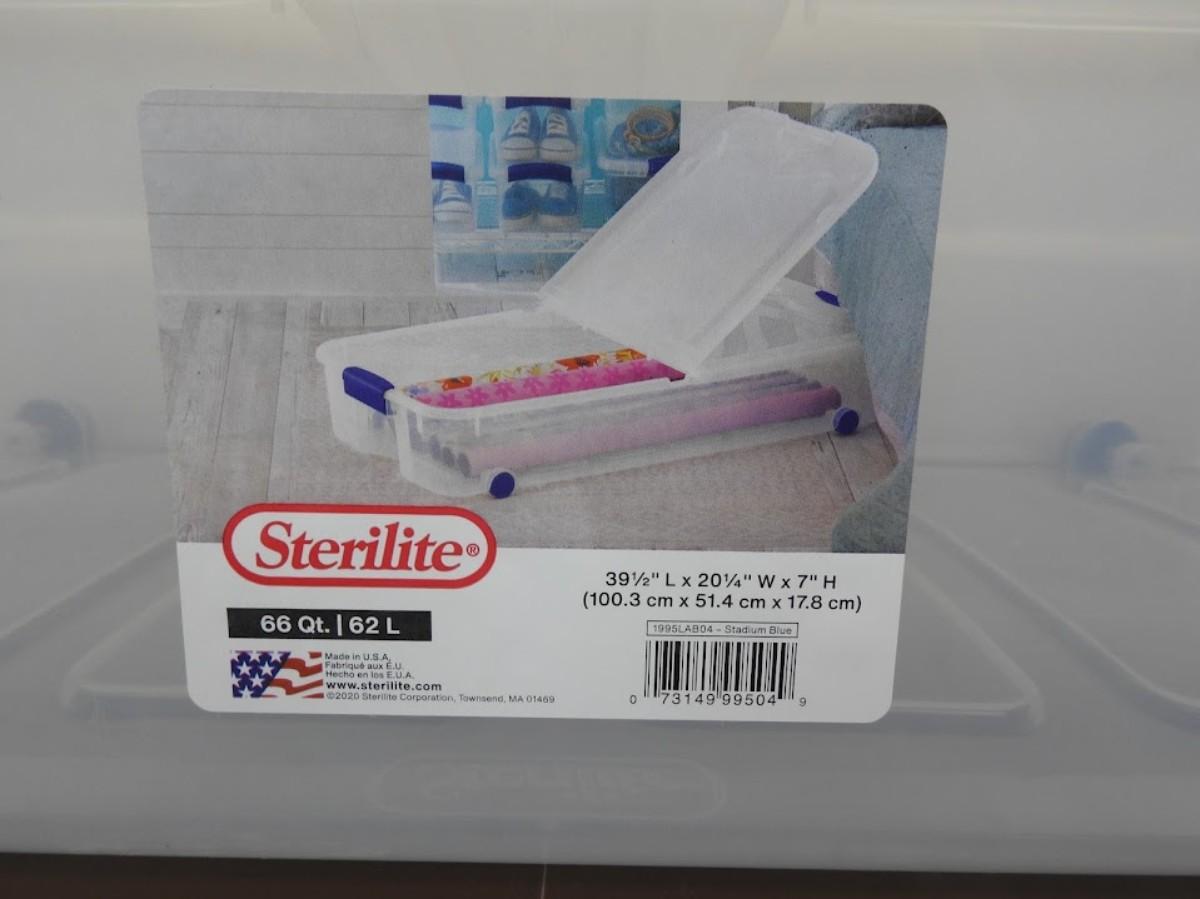 2 Underbed Storage Boxes with Lids & Wheels, by Sterilite 66qt/67qt.