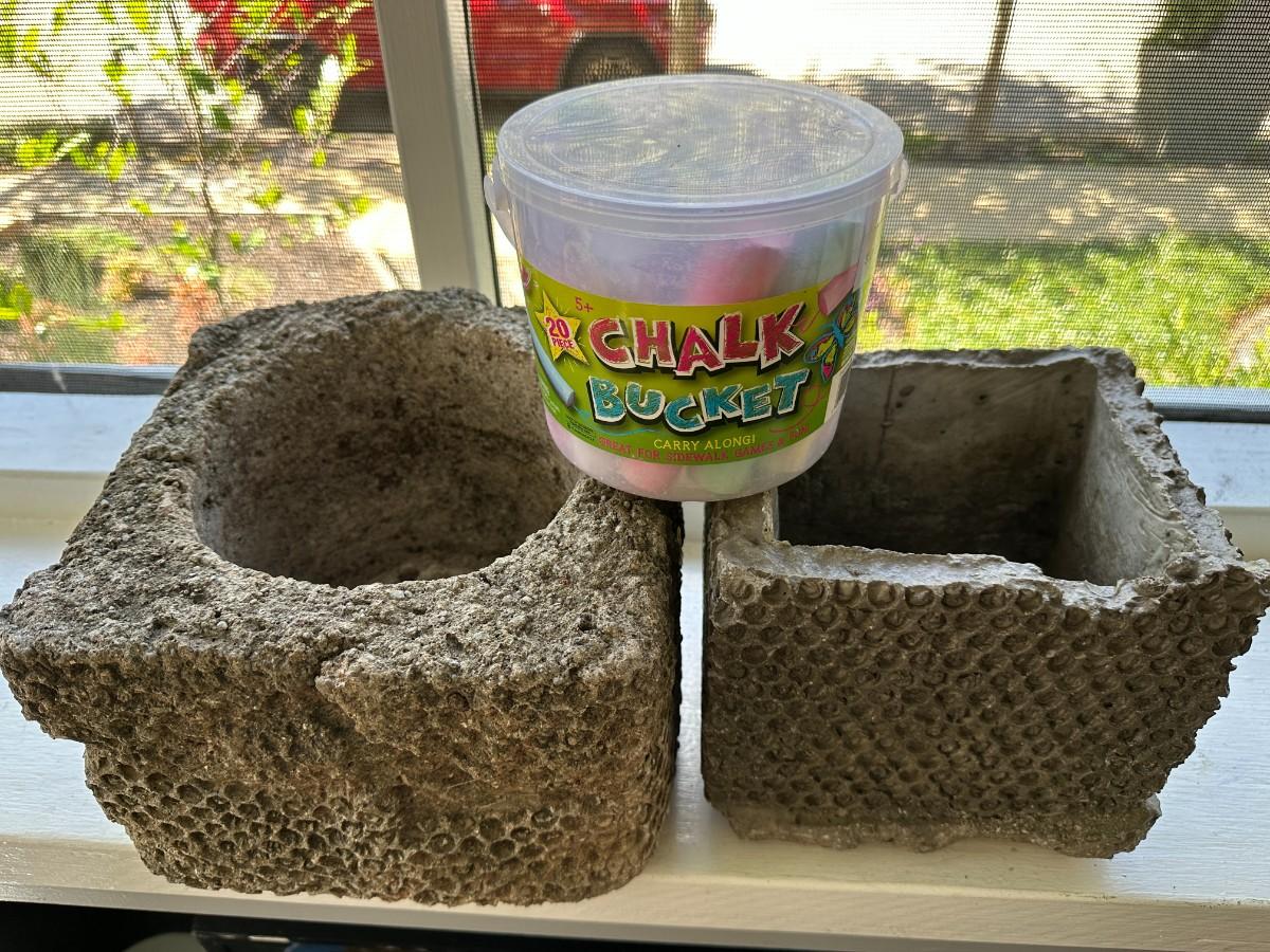 2 Unique Heavy Planters & Sidewalk Chalk!