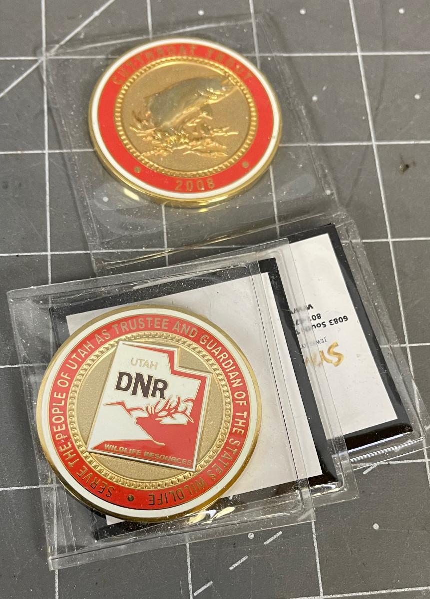 (2) Utah DNR Challenge Coins - Cut Throat Trout