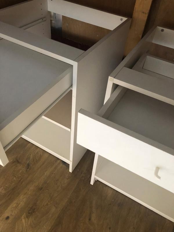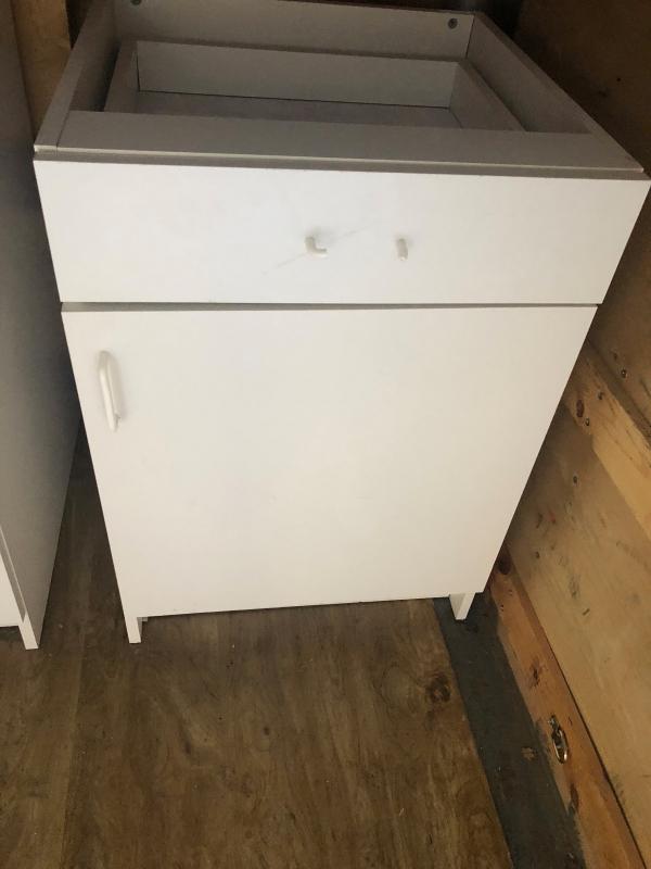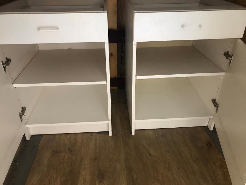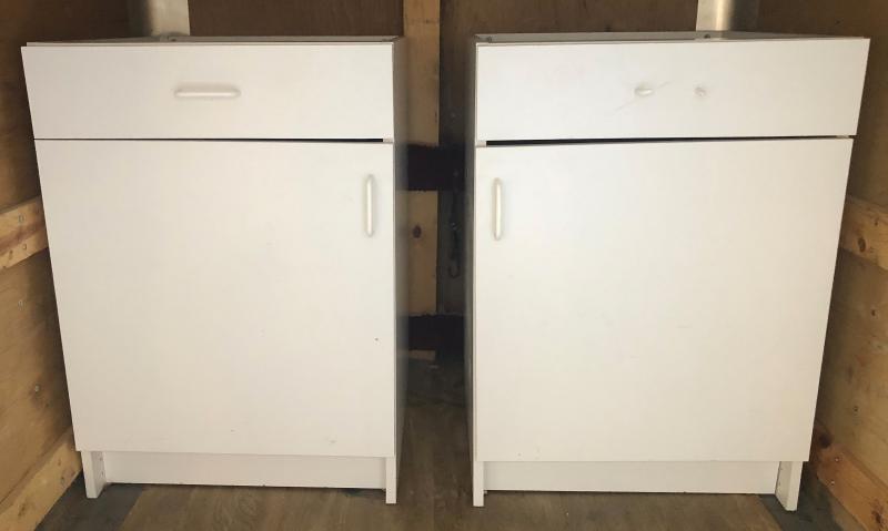 Measure 24x24x34 1/2" tall. Good condition, one handle broken, finished on both sides they can be free standing.