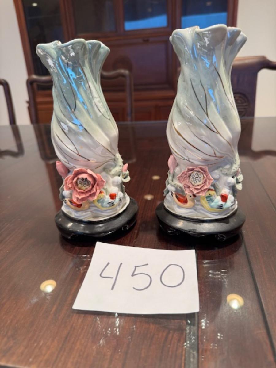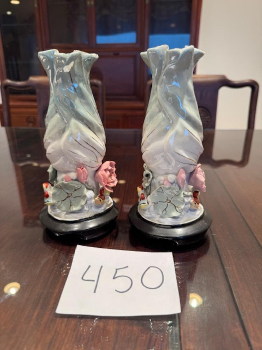 vases 8" x 4" x 3" as found some luster is missing on both vases see pics