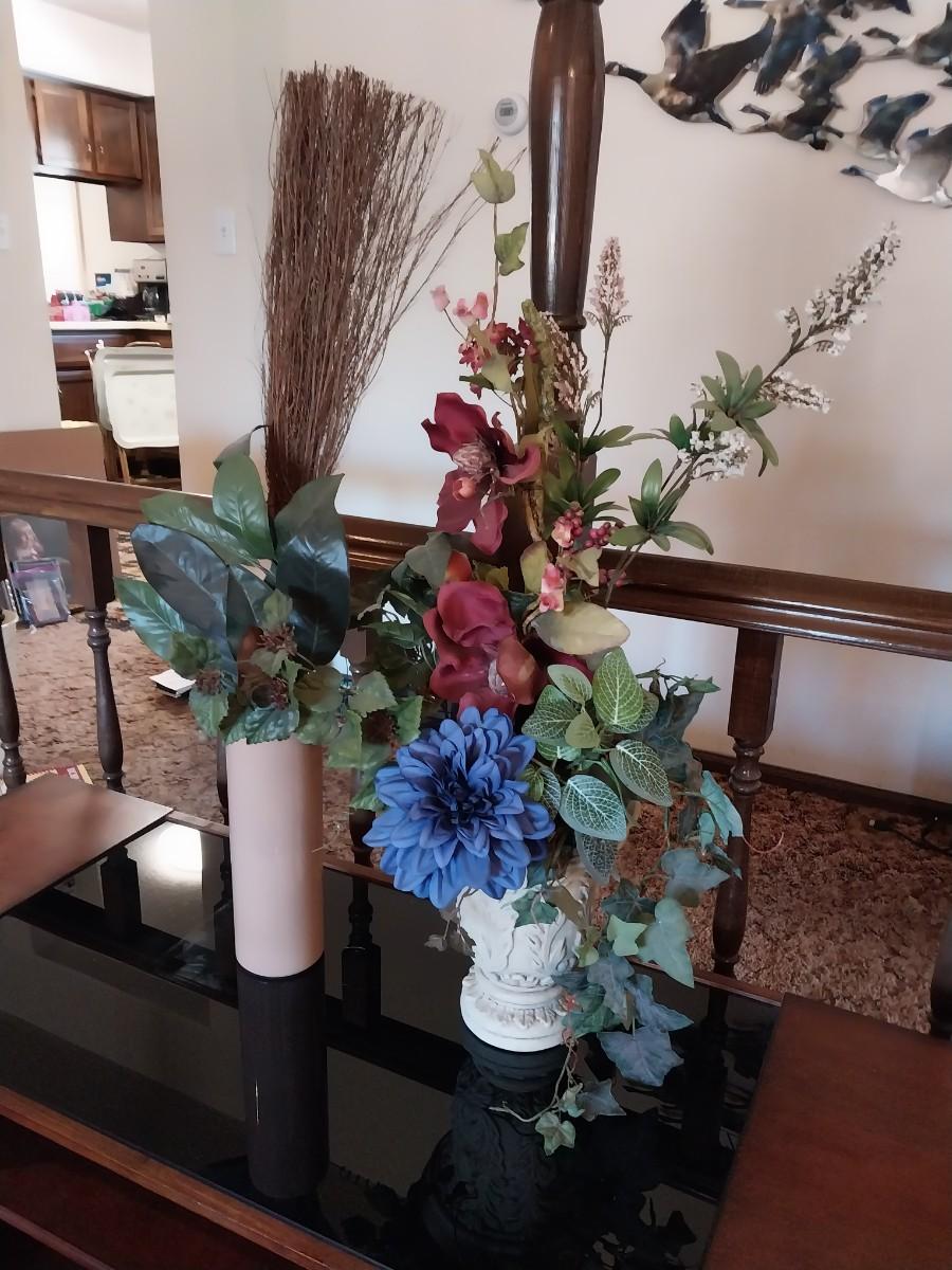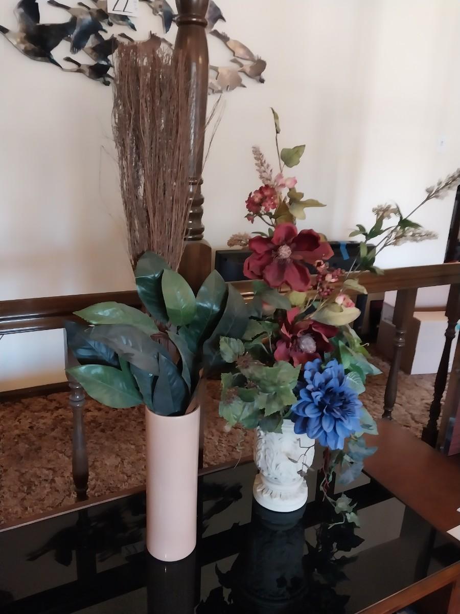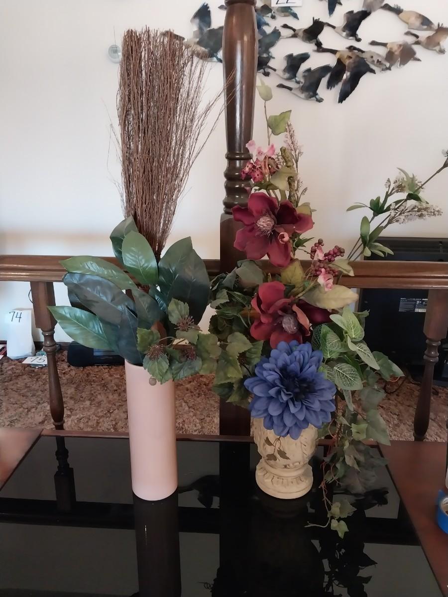 2 VASES WITH FAUX FLOWERS AND FOLIAGE