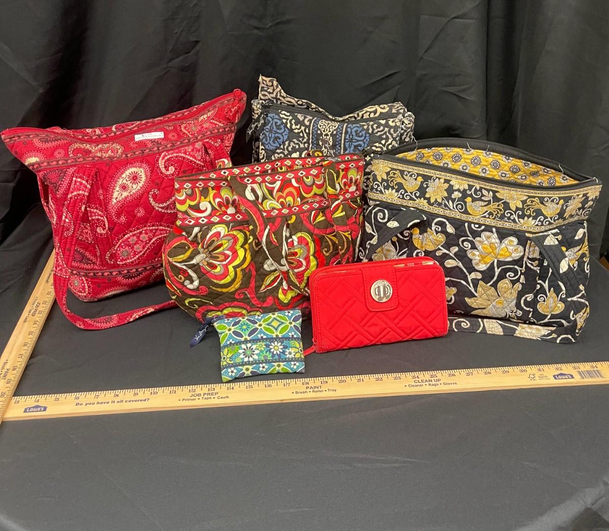 Purses / Handbags: 6 ITEMS: Retired Vera Bradley Yellow Bird Tote Shoulder Bag, Canterbury Cobalt Hipster, Morgan Puccini Shoulder Bag, Mesa Red Paisley Shoulder Bag, Canyon Sunset Turnlock Wallet, Daisy Daisy Coin Purse;