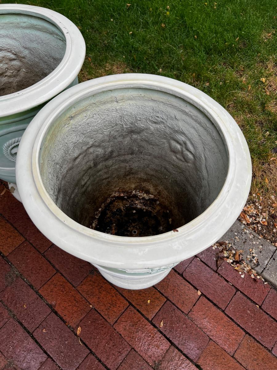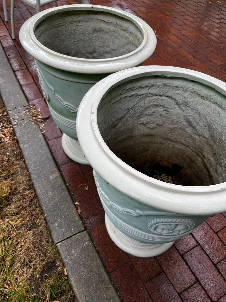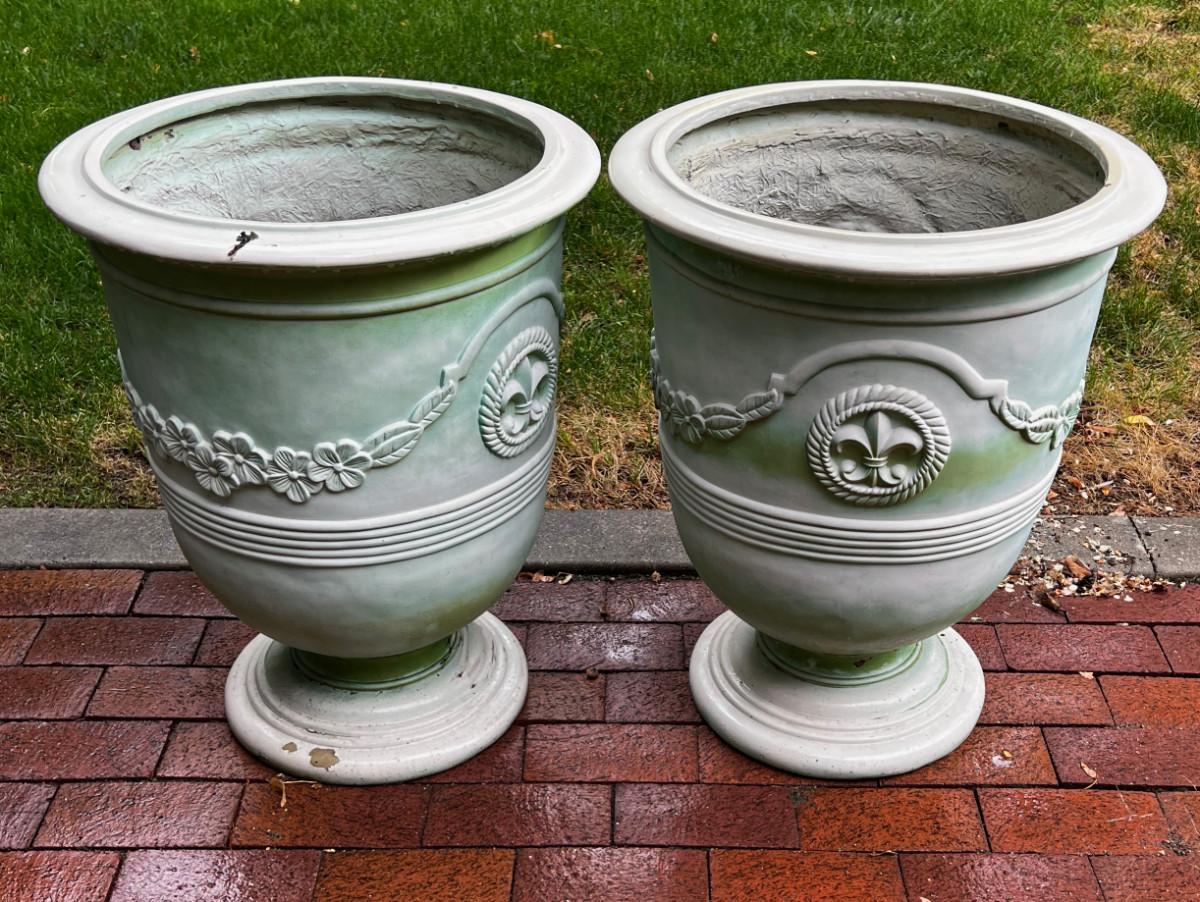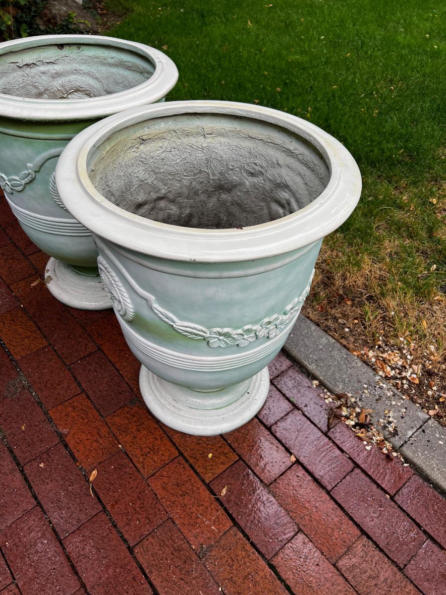 2 Very Large Fiberglass Flower Planter Pots for the outdoors.