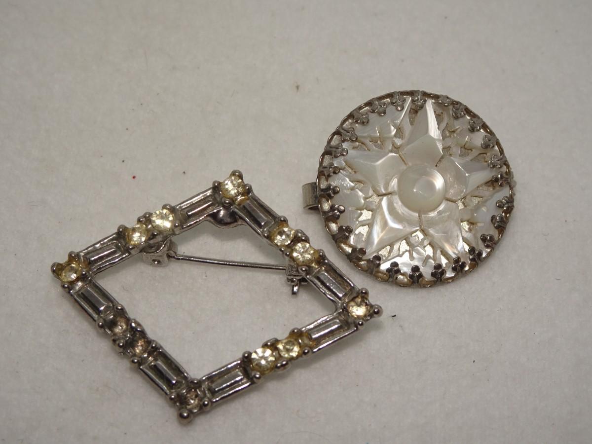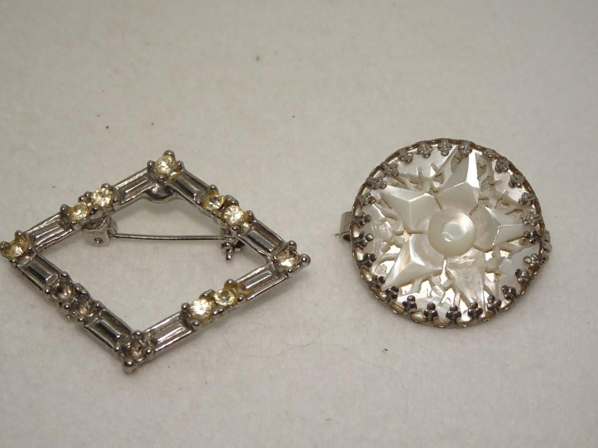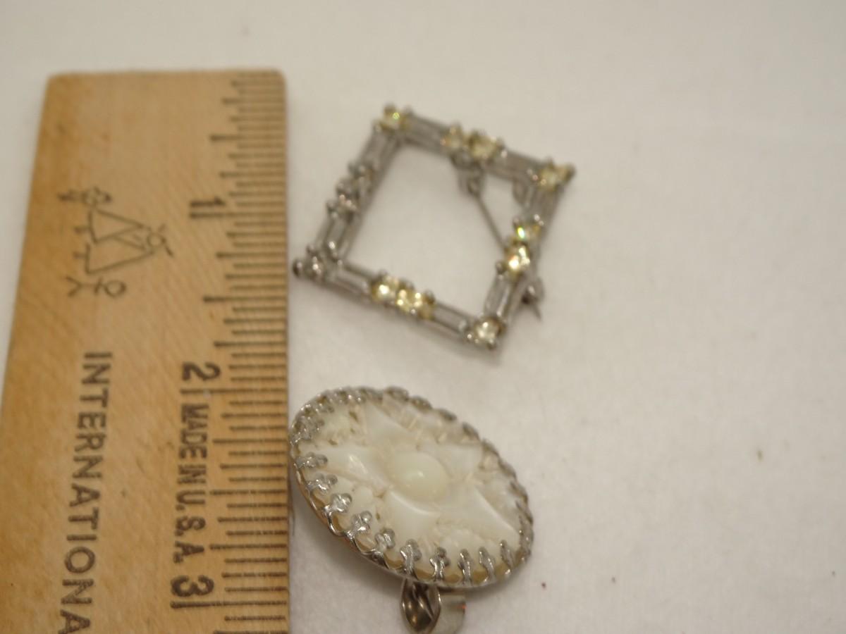 2 Victorian Style Rhinestone & Mother of Pearl Pins