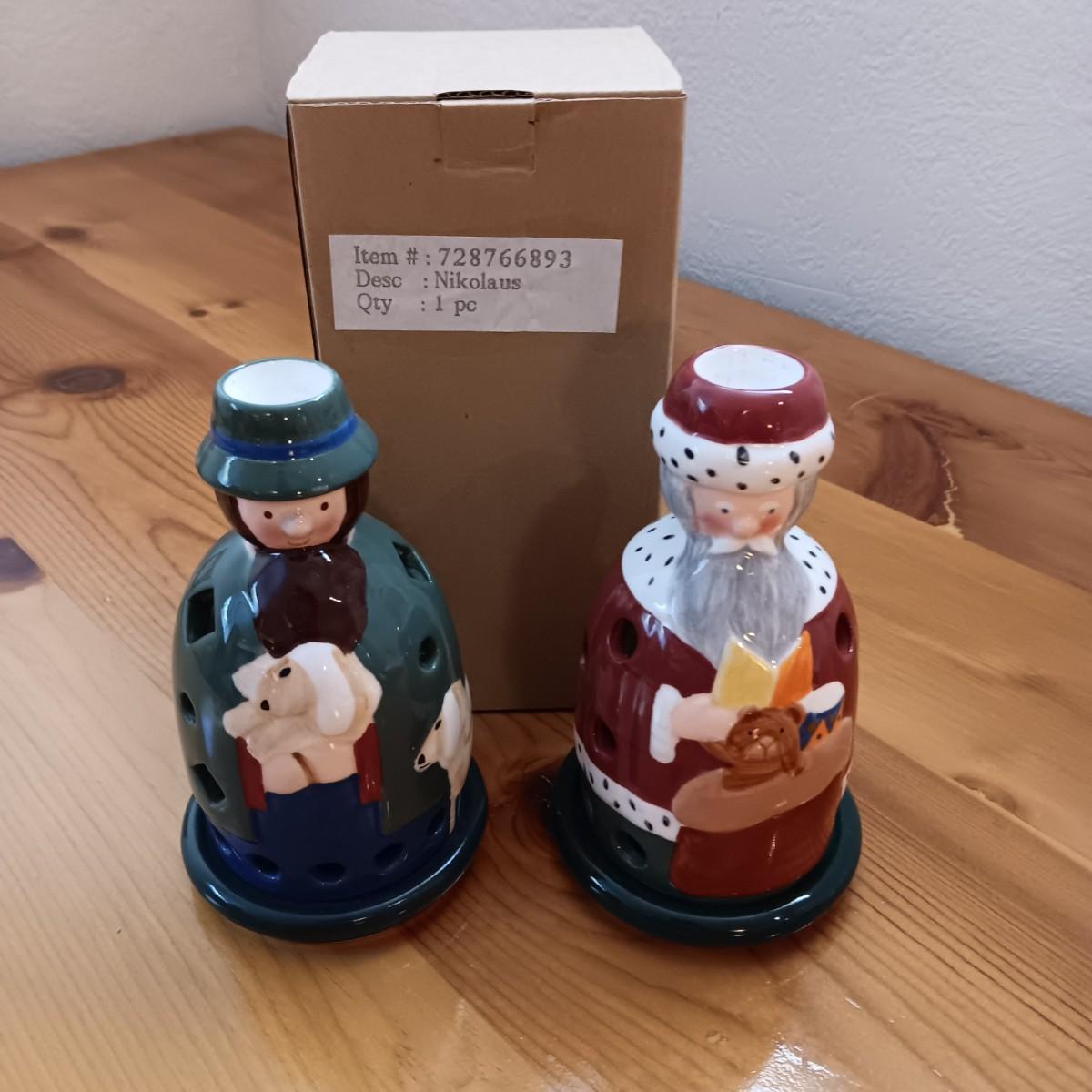2 VILLEROY & BOCH "NIKOLAUS & SHEPHERD" CANDLESTICK VOTIVE HOLDERS