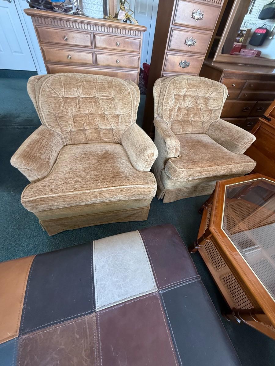 A pair of velour traditional lounge chairs that offer both comfort and classic style, perfect for relaxing in your living space.