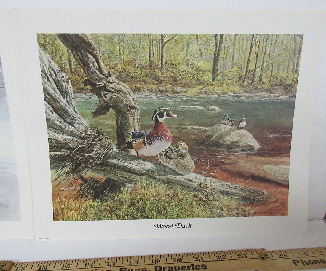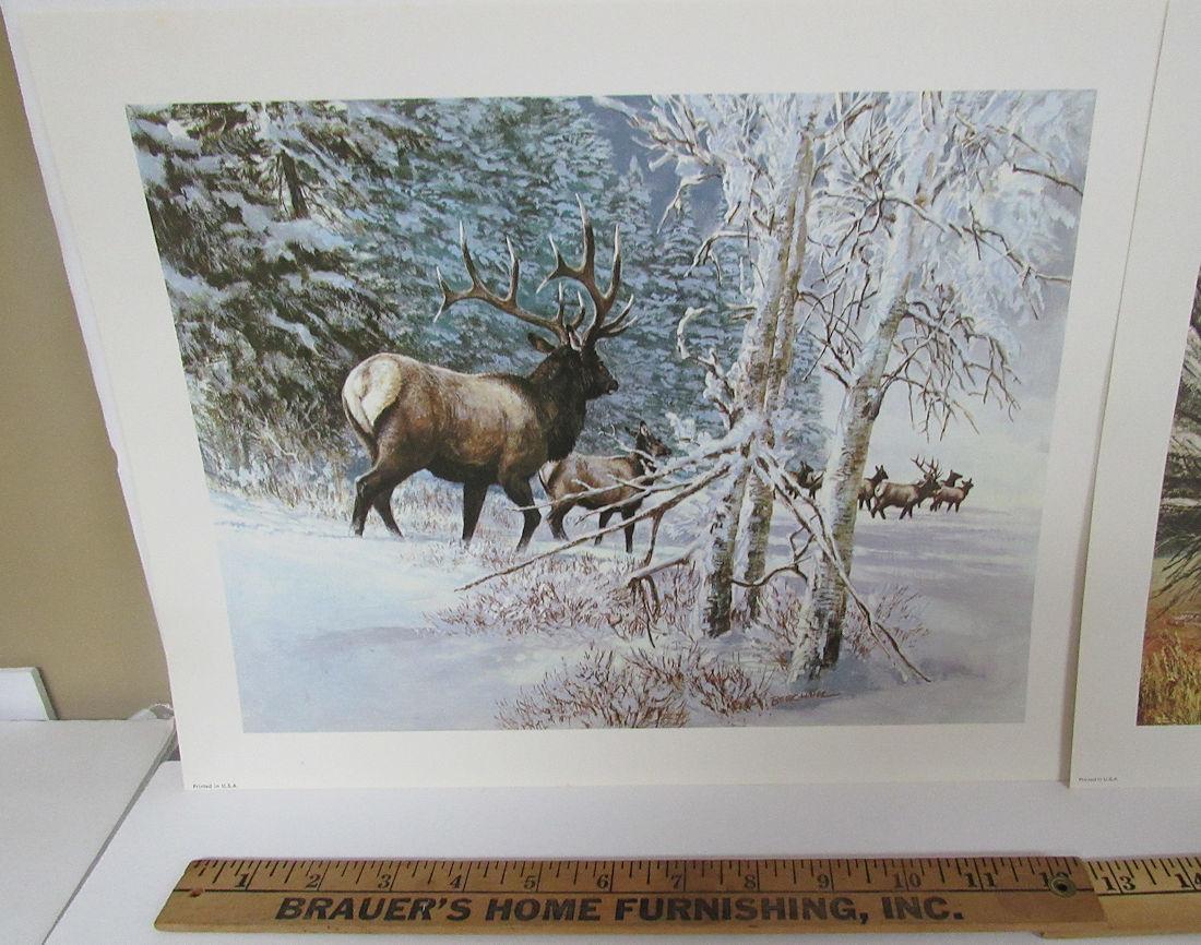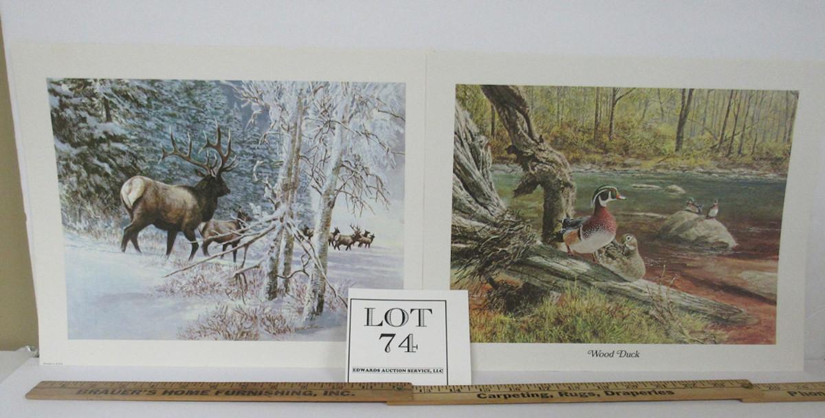 2 Vintage 1970s Wildlife Prints, USA, Elk and Wood Ducks
